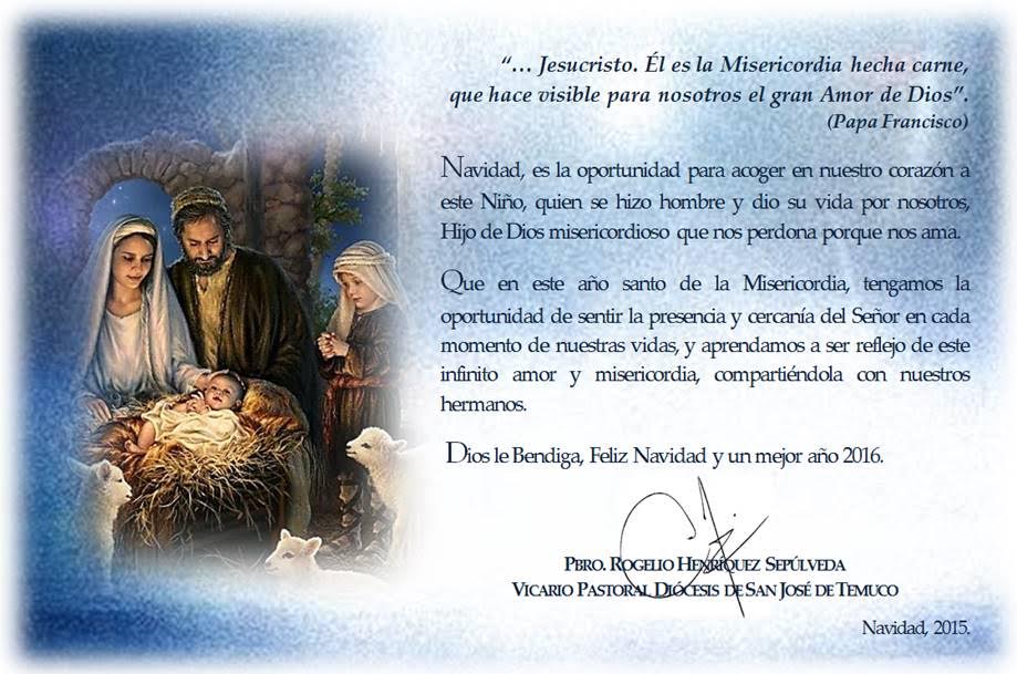La Vicaría de la Diócesis San José, no quiso estar ausente en esta Navidad. Es por este gran acontecimiento, que les desea un cariño saludo a todos nuestros hermanos que pertenecen al Obispado de Temuco.