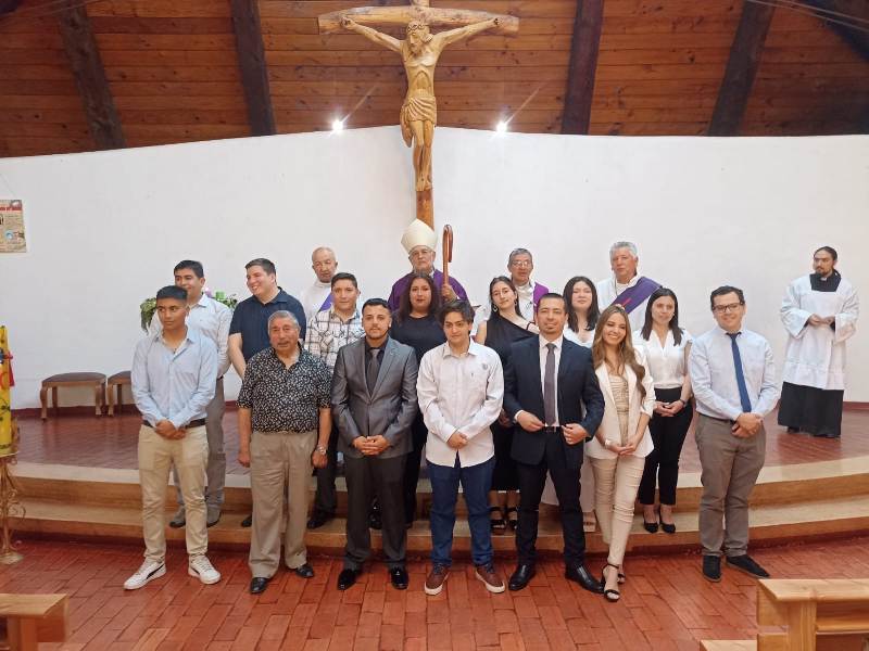 El sábado 6 de diciembre, la comunidad de la parroquia Jesús Obrero, perteneciente al Decanato Temuco Norte, celebró con mucha fe y alegría el Sacramento de la Confirmación para 15 adultos. La Eucaristía fue presidida por el obispo diocesano Jorge Concha Cayuqueo, junto al párroco Miguel Niculqueo, acompañado por los diáconos Luis Cortés y Luis Muñoz.