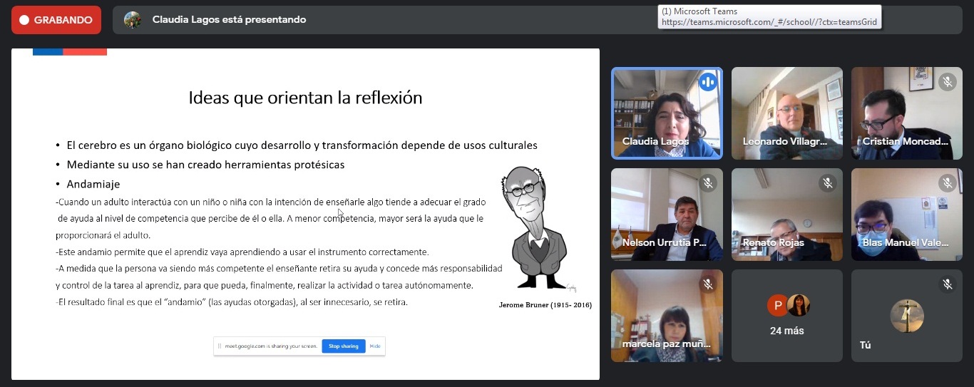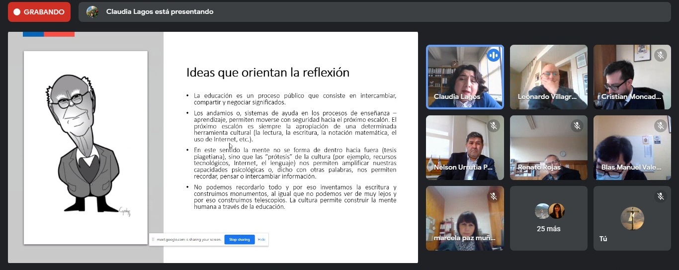 Agregó que: “Invitamos a Daniel Rodríguez Morales, Secretario Ejecutivo de la Agencia de Calidad de Educación, a quien le pedimos que nos expusiera sobre los resultados de aprendizaje de los estudiantes en contexto de pandemia y qué urgencias o respuestas se esperan de los establecimientos educativos para acompañar estas necesidades evidenciadas y también nos acompañó Claudia Lagos Serrano, Coordinadora de Formación Docente del CPIP del Ministerio de Educación. Ambos fueron importantes momentos para reflexionar de lo que ha ido ocurriendo y precisándonos aspectos que nos desafían, que ayudan a buscar nuevos caminos. Destacar que en el caso de Don Daniel Rodríguez, nos invitó a ver cómo la Evaluación debe ser el proceso por el que se da cuenta del aprendizaje, es ello lo que se propusieron también como Agencia de Calidad de Educación, a través de la Evaluación que aplicaron voluntariamente a los establecimientos en el país. También, se propusieron ver si esa Evaluación equilibraba como proceso de rendición de cuentas y también el hecho de poder generar confianza en los establecimientos, para que la mayoría de ellos pudieran efectivamente aplicar la Evaluación y tener información válida para la mejora. Importante fue conocer los resultados, que son preocupantes a nivel del país, existe mucha urgencia de recuperar aprendizajes, de cuidar lo socioemocional y existen algunas claridades que pueden ayudar en esto, como por ejemplo, seguir trabajando con las familias, que ha sido un pilar fundamental y también hacer una buena evaluación, reflexión de los resultados propios de cada establecimiento, para elaborar planes de mejora. En el caso de Claudia Lagos, nos compartió algunas estrategias, herramientas que hoy día son muy importantes para desarrollar andamios y sistemas de apoyo en los procesos de enseñanza-aprendizaje, permitiéndole a los educadores tener mayores seguridades para ir instalando aprendizajes en los niños. Así es que hizo un barrido por varias estrategias, que hoy día se están utilizando muchas de ellas en el ámbito del uso de las TIC y que desafían para aprenderlas, pero también ofrecen nuevas oportunidades para aprendizaje. Creo que fue un espacio muy enriquecedor, donde también ella abordó toda la Formación que hoy día ofrece el CPIP para los docentes especialmente de los colegios particulares subvencionados”.