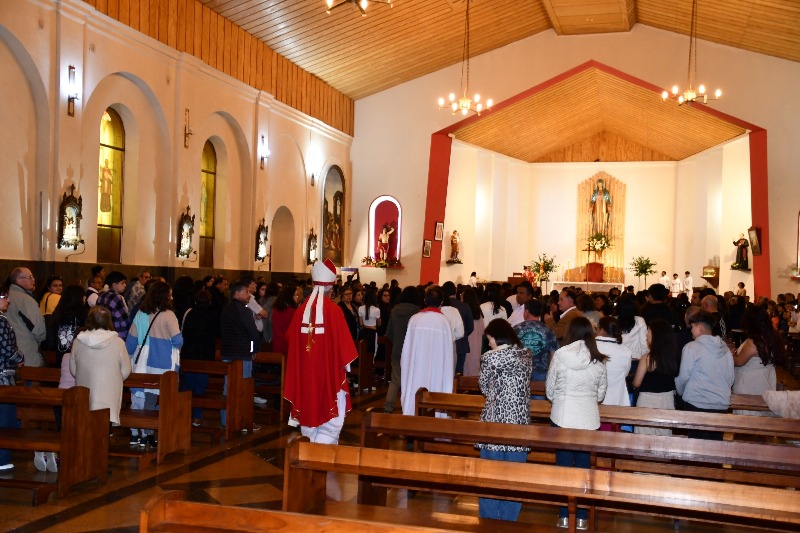 En un conmovedora eucaristía que llenó de emoción la parroquia Corazón de María en Temuco, 56 personas fueron confirmadas por el obispo de Temuco, monseñor Jorge Concha Cayuqueo, ofm y concelebrada por el párroco Fernando Vega, ceremonia de mucha espiritualidad y fraternidad en la vida de los confirmados y sus familias.