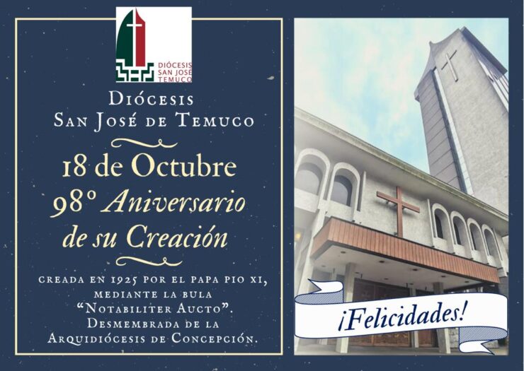 El 18 de octubre de 1925, se creó la Diócesis San José de Temuco, mediante la Bula ” Notabiliter Aucto”, saludamos a nuestra querida Diócesis y en comunidad caminamos hacia el centenario.