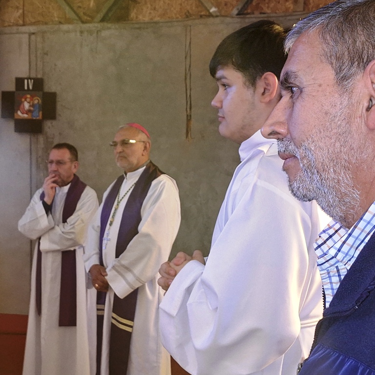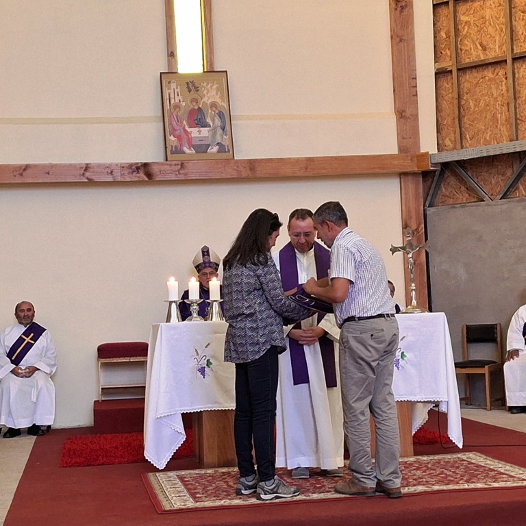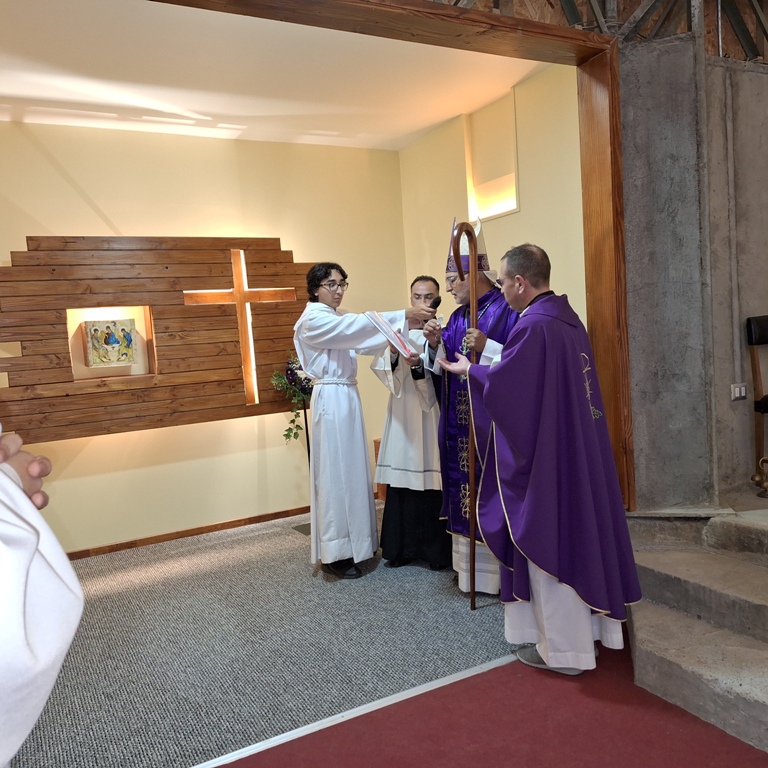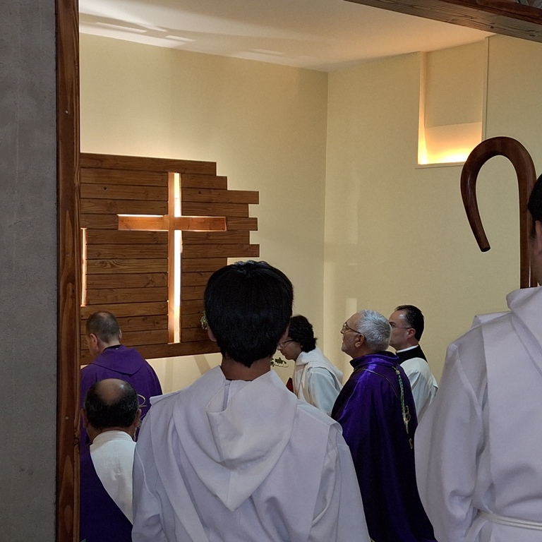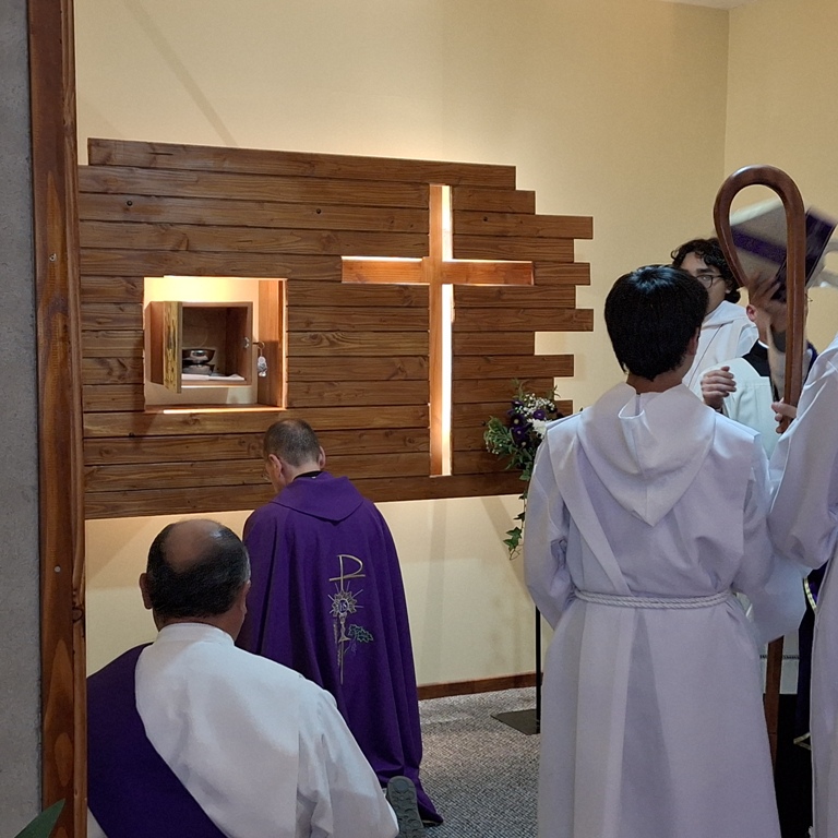 Después, frente a la capilla el obispo expresó: ” Recibe la llave de este Sagrario preparado para reservar el Sacramento del cuerpo y la sangre de Jesucristo”, y le entregó las llaves del Sagrario.