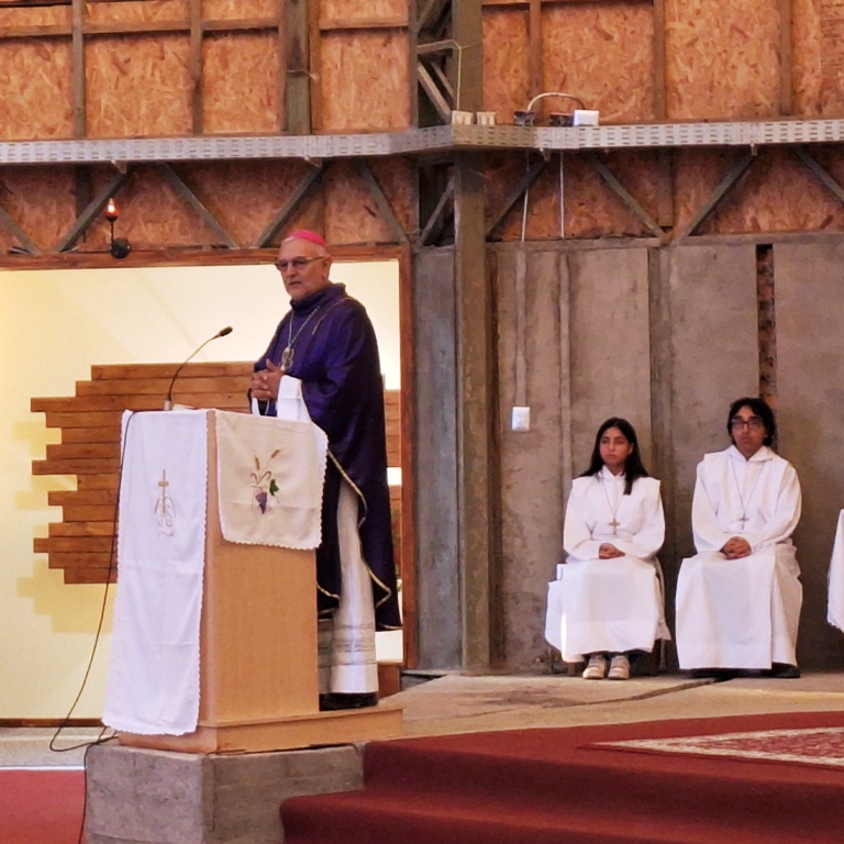 Destacó además la gran ayuda del Consejo Parroquial al párroco, el que fue presentado al inicio de la ceremonia. Luego, el obispo profundizó en este rito de instalación, describiendo los ritos, siendo los fieles testigos de este nuevo servicio de su nuevo párroco, para servir en nombre de Dios a la comunidad, siendo también la comunidad muy importante para sostener, apoyar, preocuparse de él. Profundizó además en la fuerza de la oración con fe, con perseverancia, insistencia y valor ” Todo el caminar personal y comunitario es un camino de fe, donde ustedes junto al párroco van a compartir, Él es el camino, la Verdad y la Vida, nuestro Señor Dios a quien amamos y en quien creemos”.