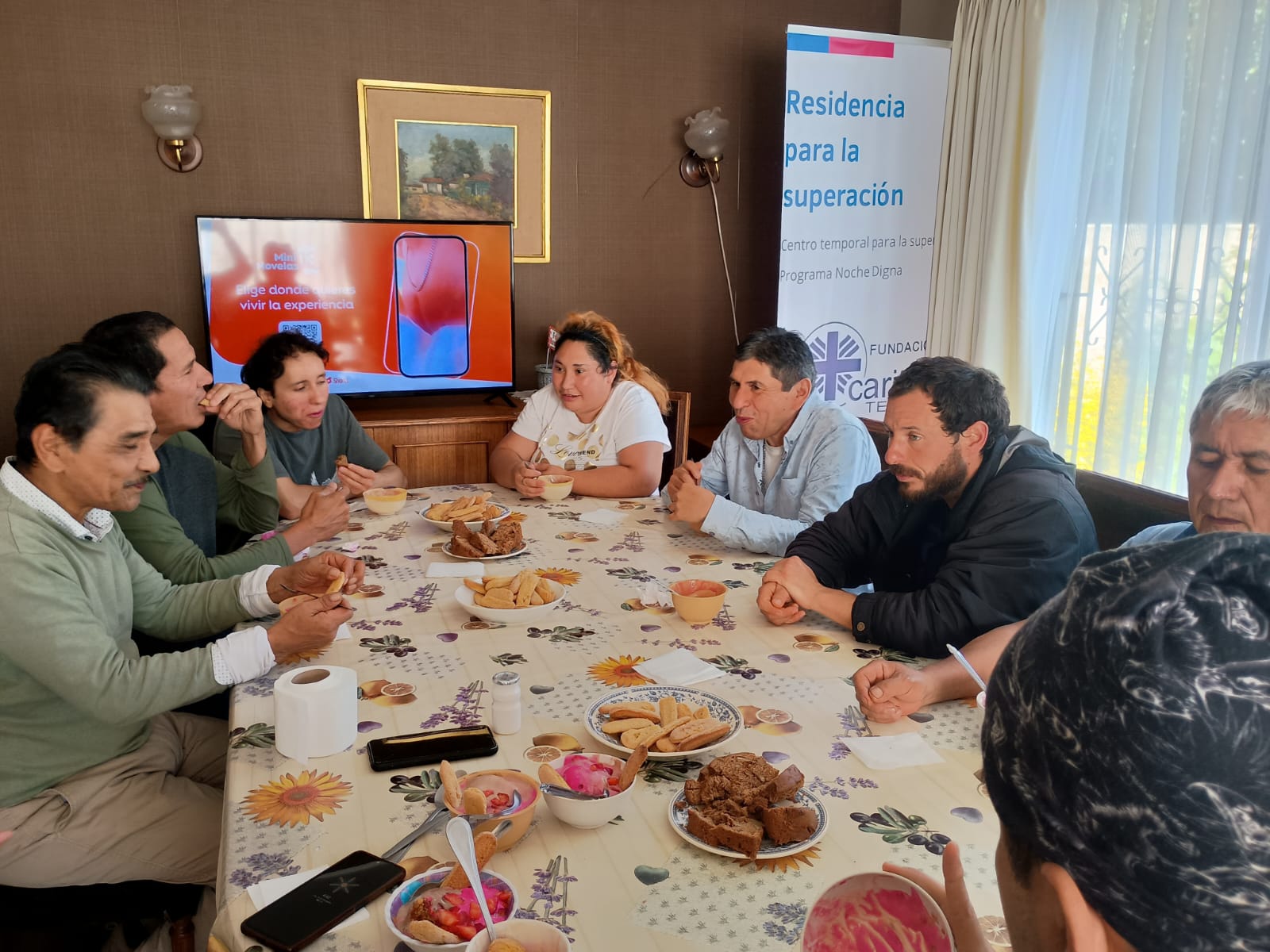 “Gracias por compartir con nosotros actividades recreativas, tardes de conversación y hermosas once navideñas, entregando alegría, cercanía y esperanza. Su compañía y generosa entrega, con las y los participantes de la Residencia para la Superación, es el verdadero gesto de amor cristiano, reflejo del espíritu del nacimiento del Niño Jesús”, manifiesta Nataly Flores Alarcón, Encargada Residencia Superación de Fundación Caritas Temuco.