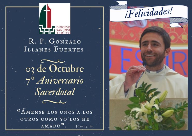 La Pastoral del Clero de la Diócesis San José de Temuco, saluda con mucho cariño y gratitud, al R.P. Gonzalo Illanes Fuertes. Que nuestro Señor lo bendiga y colme de bendiciones, en este nuevo aniversario de Ordenación Sacerdotal.
