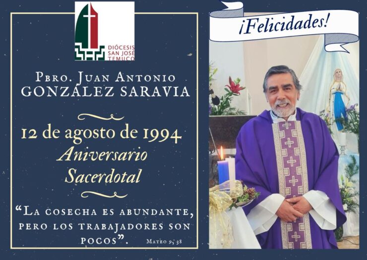 La Pastoral del Clero de la Diócesis San José de Temuco, saluda con mucho cariño y gratitud, al Pbro. Juan González Saravia.
