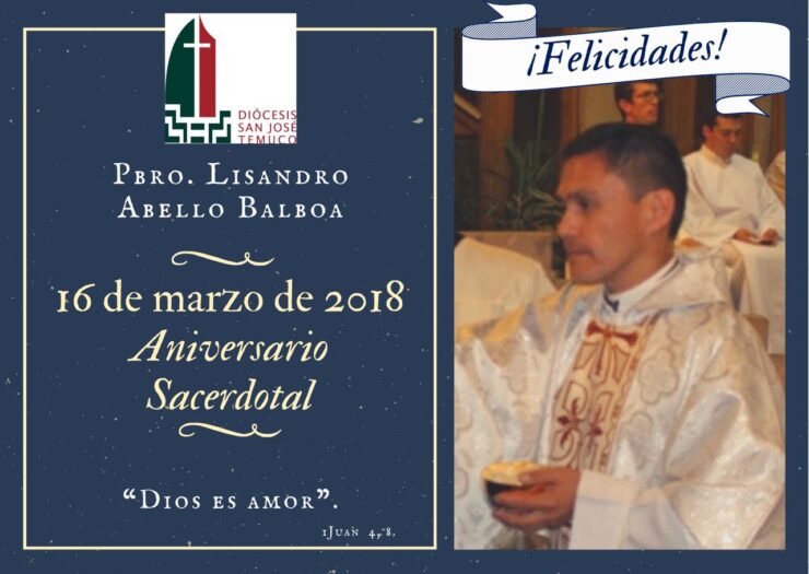 La Pastoral del Clero de la Diócesis San José de Temuco, saluda con mucho cariño y gratitud, al Pbro. Lisandro Abello Balboa. Que nuestro Señor lo bendiga y colme de bendiciones, en este nuevo aniversario de Ordenación Sacerdotal.