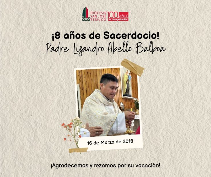 La Pastoral del Clero de la Diócesis San José de Temuco saluda con profundo cariño, alegría y gratitud al Pbro. Lisandro Abello Balboa, párroco de San Enrique de Purén, al celebrar un nuevo aniversario de su Ordenación Sacerdotal.
