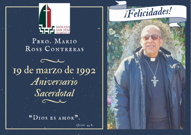 La Pastoral del Clero de la Diócesis San José de Temuco, saluda con mucho cariño y gratitud, al Pbro. Mario Ross Contreras. Que nuestro Señor lo bendiga y colme de bendiciones, en este nuevo aniversario de Ordenación Sacerdotal.