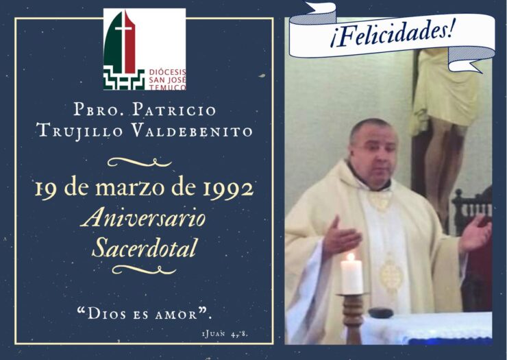 La Pastoral del Clero de la Diócesis San José de Temuco, saluda con mucho cariño y gratitud, al Pbro. Patricio Trujillo Valdebenito. Que nuestro Señor lo bendiga y colme de bendiciones, en este nuevo aniversario de Ordenación Sacerdotal.