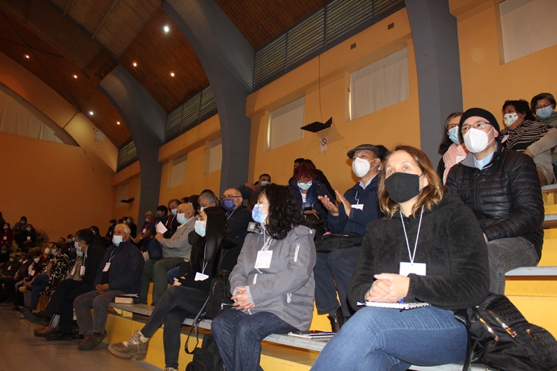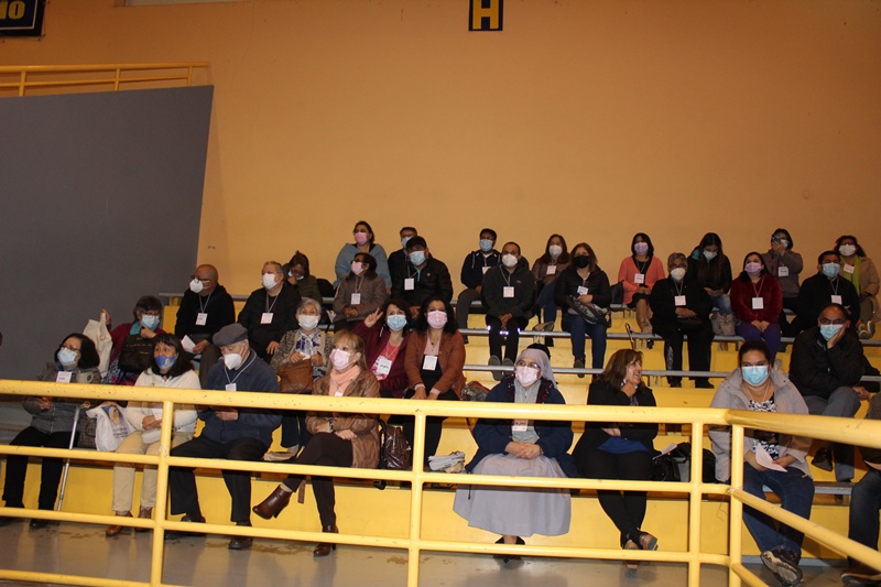 A continuación, los convocados se reunieron en grupos, cuyo instrumento de trabajo fue tratar sobre las relaciones más evangélicas y las estructuras más sinodales. Luego, al retornar al recinto , el obispo diocesano, monseñor Héctor Vargas, dirigió unas palabras al pueblo de Dios convocado, señalando que: “Agradecer a ustedes porque han mantenido viva su Iglesia, la han mantenido absolutamente viva, esta no es una Iglesia que cerró sus puertas, que se encerró y de la cual casi desapareció, eso ha sucedido en algunas otras partes, en cambio esta Iglesia ha funcionado de una manera maravillosa, con todas las actividades que han hecho, con toda la creatividad, la creatividad de la caridad que afirma el Papa Francisco. Entonces yo he podido ver eso, como su última encíclica Fratelli Tutti, donde habla del Buen Samaritano, una encíclica que está toda así tejida a partir de la parábola del Buen Samaritano. (…) Ustedes lo han testimoniado durante la pandemia, han sido los buenos samaritanos de tanta gente, de tantos hermanos nuestros, fundamentalmente los predilectos del Señor, los hermanos y hermanas de la tercera edad, algunos tuvieron que pasar toda la pandemia encerrados, solos, porque ni la familia los podía visitar y sin embargo, ustedes llegaban hasta allá, los escuchaban, les dejaban alimentos, frazadas, otras necesidades, leña, tanta cosa y ahí estuvieron. Todos sus comedores, la cocinería de María, etc.; en realidad tanta gente encontró al Señor a través de ustedes, de este testimonio, porque no son las palabras las que contagian sino que es el testimonio el que realmente atrae.”