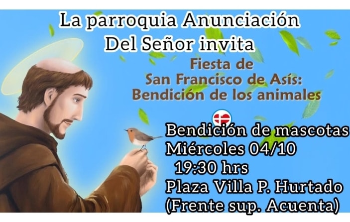 En el día de San Francisco de Asís, patrono de los animales, como ya es una tradición, se bendecirán a las mascotas, fieles animalitos que nos proporcionan compañía, afecto y protección.
