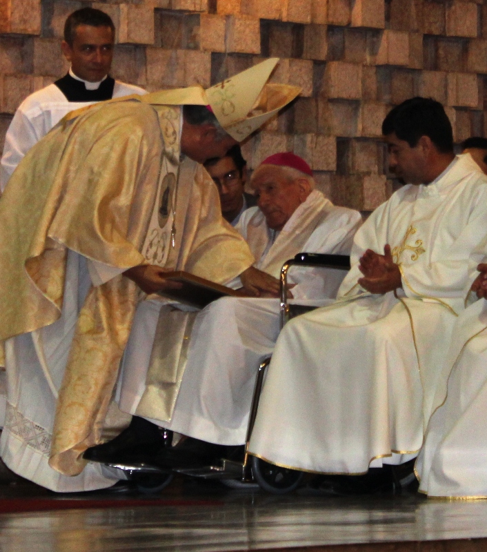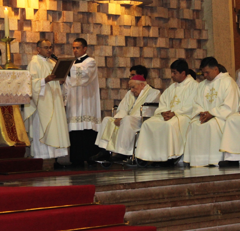 Luego, el Secretario Canciller Pbro. Carlos Hernández Cordero,  entregó el saludo de SS Francisco a Monseñor Sergio Contreras Navia por sus 50 años de Episcopado.