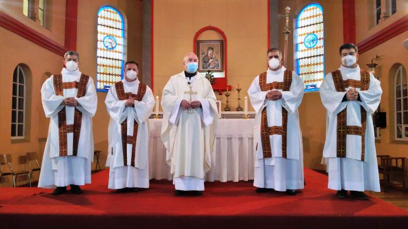 Con mucha alegría, la comunidad parroquial, dio la bienvenida a Manuel Soto, Leonardo Hernández, Pedro Vega y Ricardo Mella, quienes fueron ordenados diáconos recientemente.
