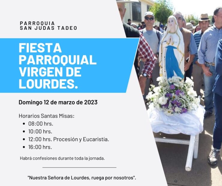 La comunidad parroquial de SAN JUDAS TADEO de la comuna de Ercilla, invita a la procesión y Eucaristías para celebrar la fiesta de Nuestra Señora de Lourdes.