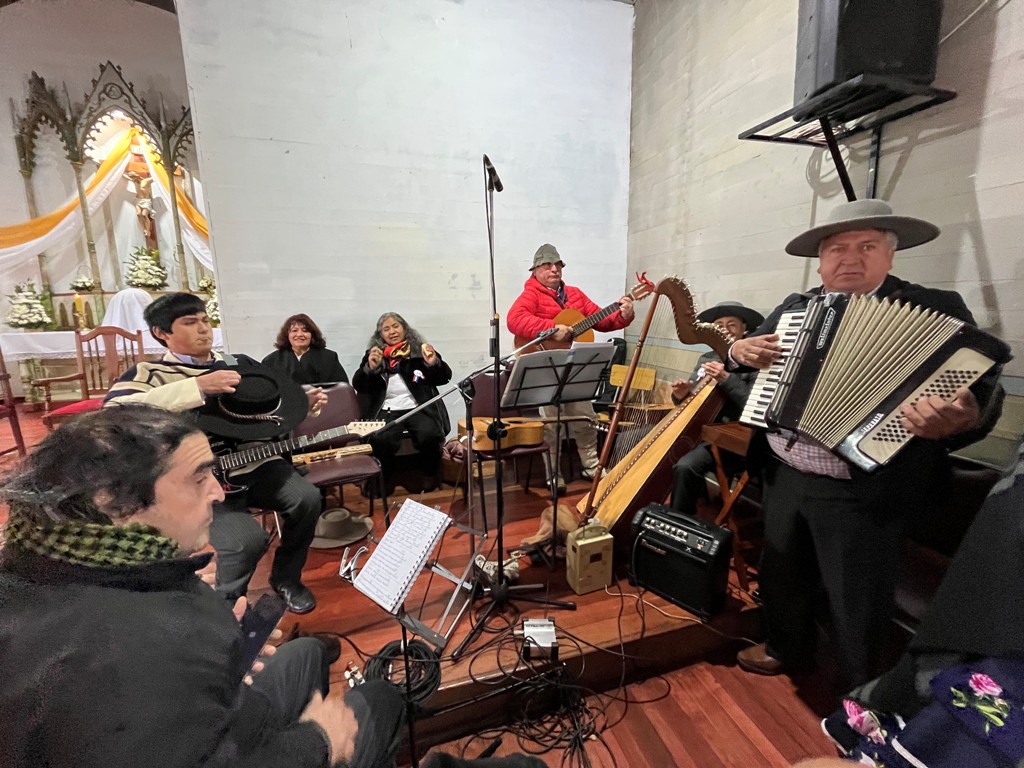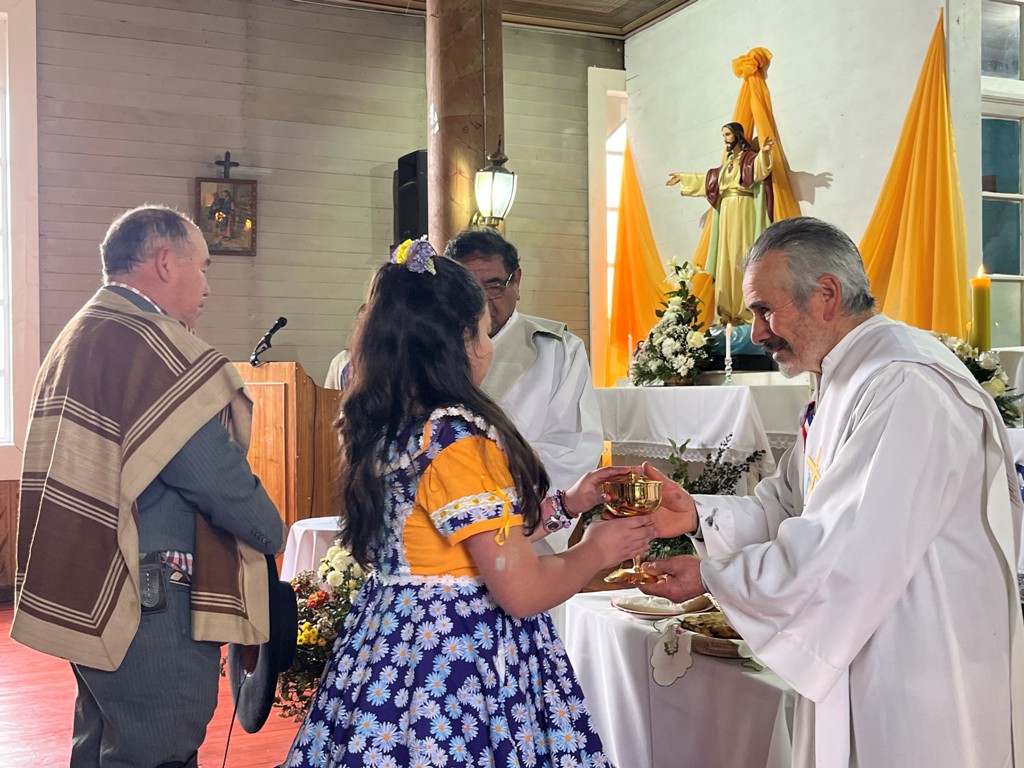 Durante el ofertorio, se presentaron ofrendas como mote, tortillas, sopaipillas y carbón, productos elaborados por las propias comunidades, que simbolizan el trabajo y la vida del campo. La eucaristía fue acompañada musicalmente por el coro Esperanza, que con panderos, guitarra, arpa y sus armoniosas voces, ofreció un sentido homenaje a la patrona de Cholchol.