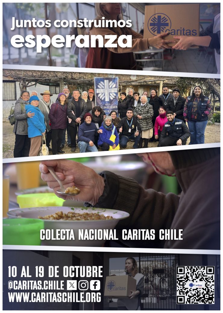 Con el lema Juntos Construimos Esperanza, se invita a toda la comunidad a apoyar con la colecta anual de Caritas Chile, cuyo objetivo es recaudar fondos para apoyar a familias y personas en situación de vulnerabilidad, como adultos mayores, personas en situación de calle, migrantes y quienes sufren los efectos de la pobreza extrema, desastres naturales o crisis económicas.