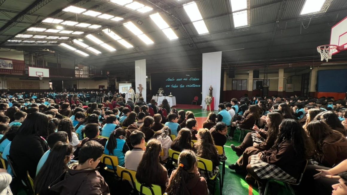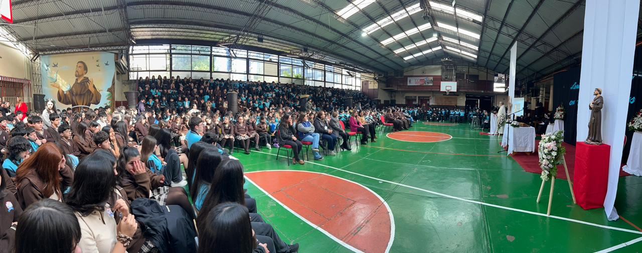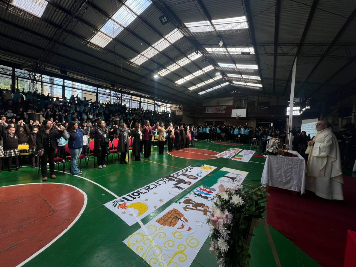 Todos los niveles, profesores y asistentes de la educación participaron de la Misa enmarcada en un ambiente de celebración por el aniversario del Colegio San Francisco, el Jubileo de la Esperanza y los 100 años de la Diócesis San José de Temuco, acompañado por el coro de las Hermanas Misioneras Catequistas de Boroa.