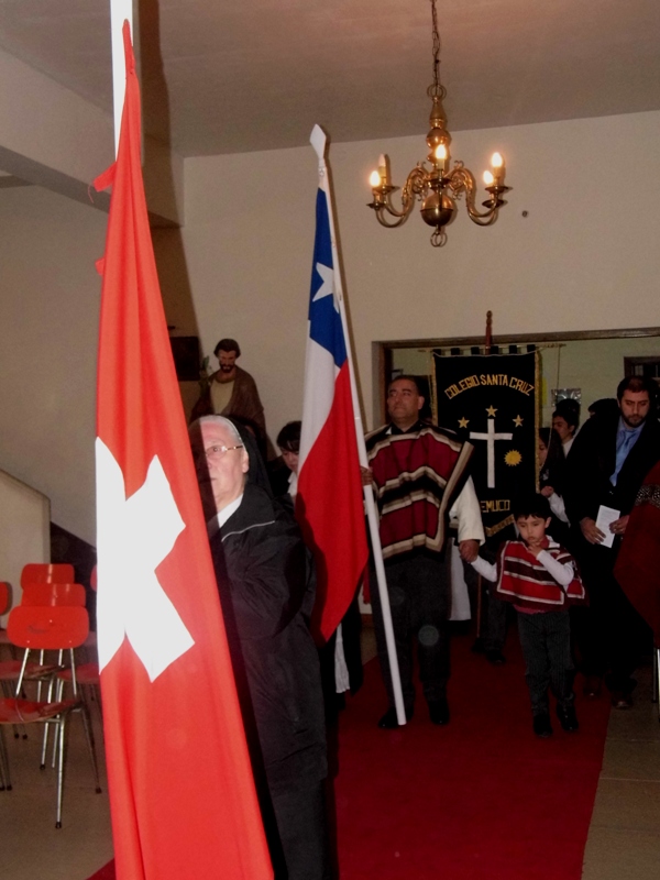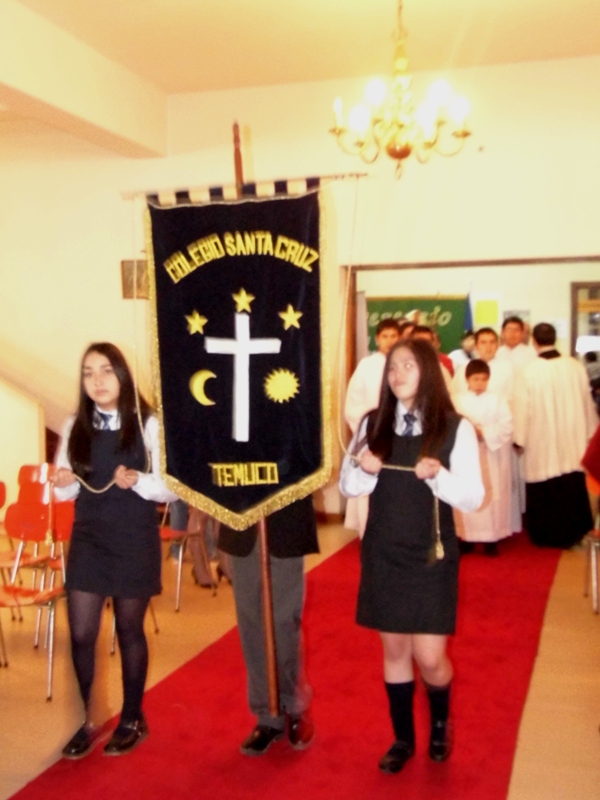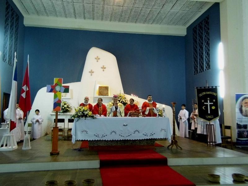 Posteriormente, a las 19:00 horas, se dio inicio a la Eucaristía en la Capilla del Colegio Santa Cruz, presidida por el Obispo de Temuco, Monseñor Héctor Vargas Bastidas, en donde estuvieron presentes Sacerdotes, invitados especiales, alumnos y apoderados.