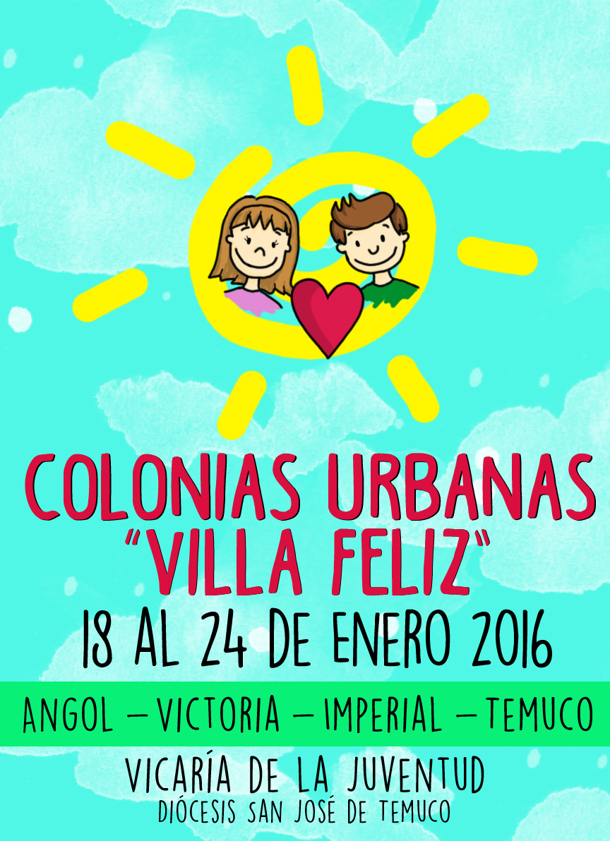 Colonias, porque es un término que utilizamos para decir vacaciones para niños y niñas. Urbanas, porque este modelo se realiza en el mismo entorno, villa o población donde viven los “Colonos” y las “Colonas”. “Villa Feliz”, porque se realizan en un lugar que se transforma en un espacio distinto, distendido, propicio al relajo y al descanso, y quieren ofrecer unos días de veraneo urbano especiales y, ojalá inolvidables, a tantos niños, niñas y adolescentes que no tienen cómo entretenerse, reír, reunirse, jugar, aprender, gozar un plato de comida, sentirse importantes, queridos; reflexionar aprendiendo a mirar sus vidas y la historia con ojos críticos desde el Evangelio, en un clima lleno de afecto y respeto. Esta felicidad pasa por la amistad, el juego, y las entretenciones educativas y formativas.