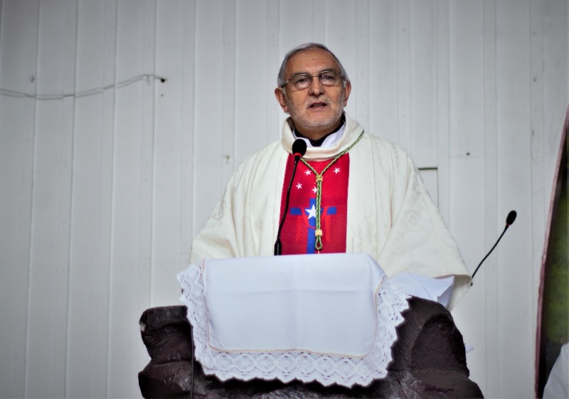 La Eucaristía, se inició junto a las palabras del diacono Pedro Celis, representante del consejo pastoral, quien dio a conocer la realidad geográfica y social de la parroquia San Sebastián de Lonquimay.