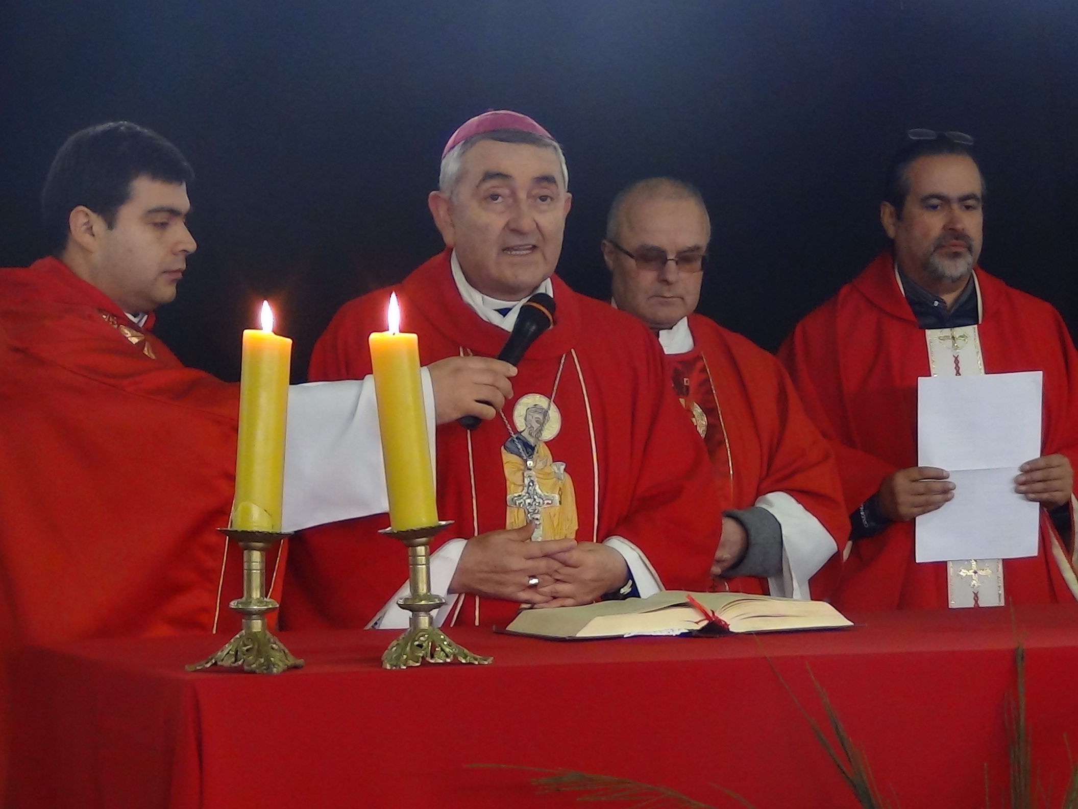 Posteriormente, una vez finalizado el recorrido por el río Imperial, la comunidad se dirigió hacia el Gimnasio Municipal de la localidad, en donde se celebró la Santa Eucaristía, presida por Monseñor Héctor Vargas.