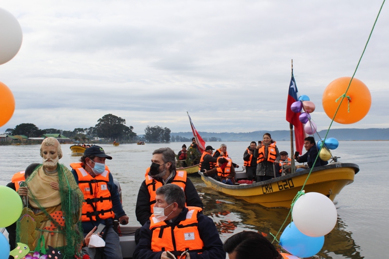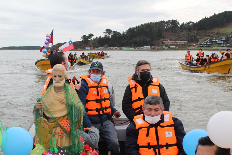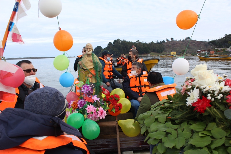La festividad comenzó con la tradicional procesión desde la entrada del pueblo, donde un grupo de pescadores y mariscadores de la zona portaban la imagen del santo y recorrieron las principales calles, acompañado del canto y la oración, hasta llegar al embarcadero, donde subieron a los botes para ingresar en la aguas de rio Imperial, para ser bendecidas, recordar a quienes ya han perdido  y dejar una ofrenda floral, además pedir por sus trabajos para poder llevar el sustento para sus familias.