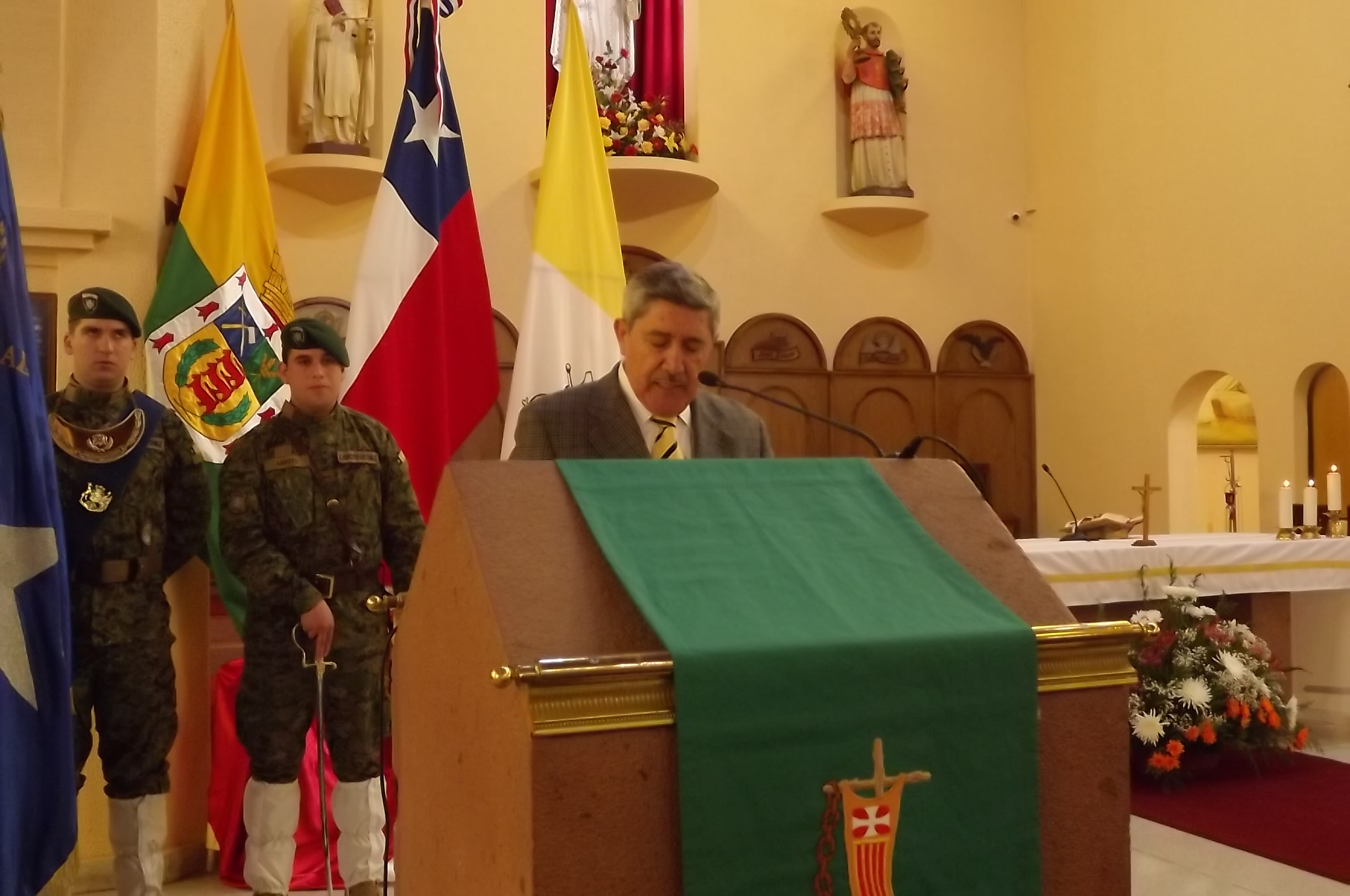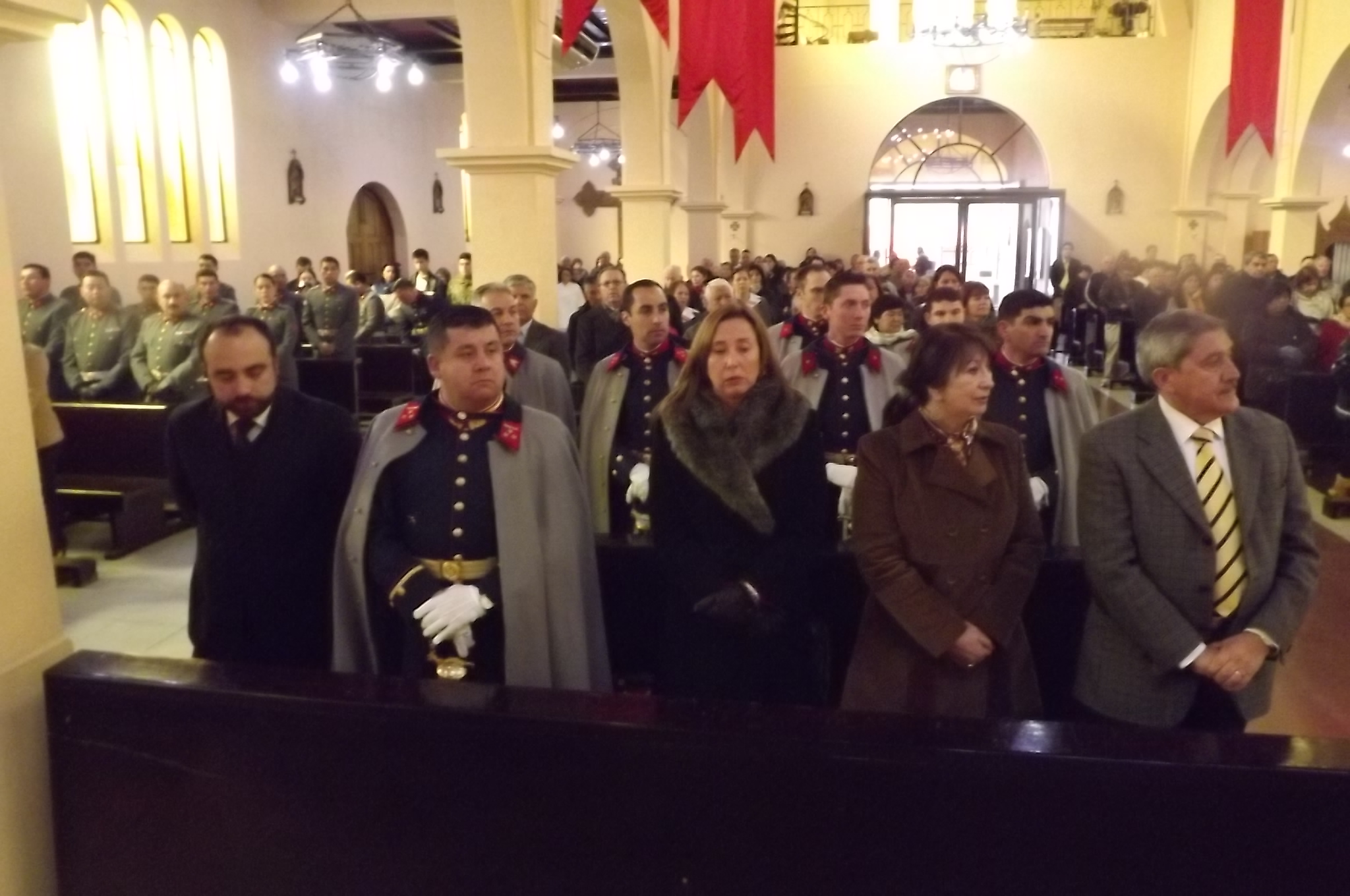 La ceremonia religiosa la celebró el párroco, padre Juan Díaz Rodríguez y la asistencia del alcalde de la comuna, Hugo Monsalves Castillo y señora; el comandante del Regimiento Logístico N° 3 “Victoria”, coronel Joaquín García Díaz y señora; los concejales Cecilia Muñoz Muñoz, Luciano Alvarado Torres y Marco Baratta Bertoloni; el jefe de la Policía de Investigaciones, jefes de Servicios, Voluntariado.