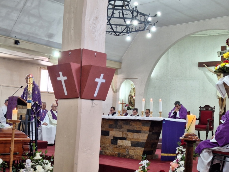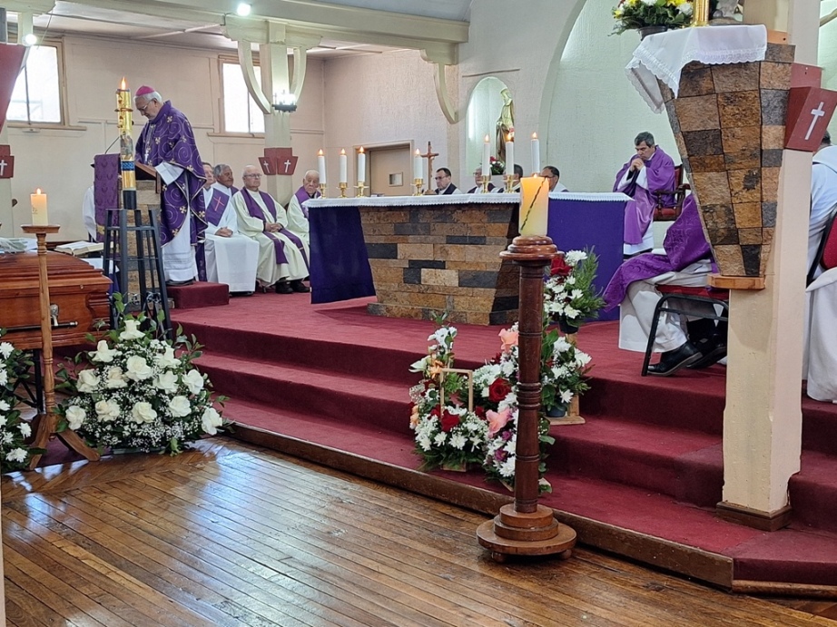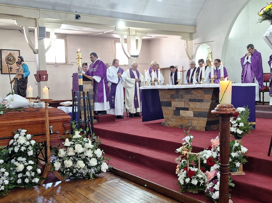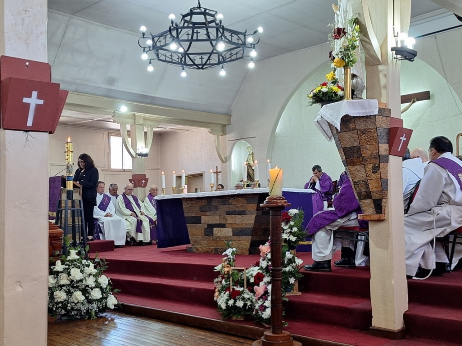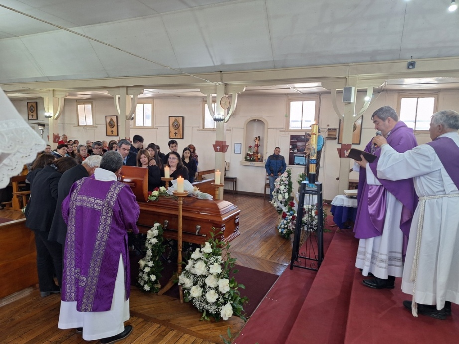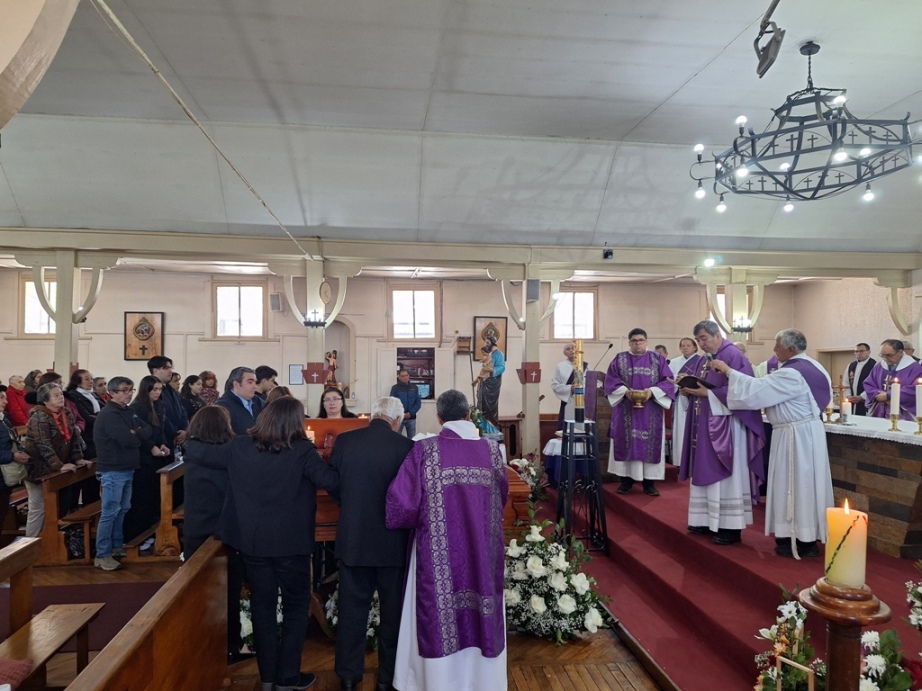 La celebración fue presidida por monseñor Jorge Concha Cayuqueo, OFM, obispo diocesano, acompañado por numerosos sacerdotes, familiares, fieles y amigos provenientes de diversos lugares, entre ellos desde la Universidad Católica de Temuco, que quisieron acompañar y rendir un sentido adiós a quien fue una mujer de profunda fe y entrega.