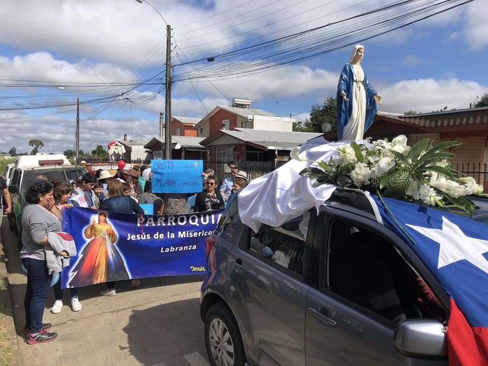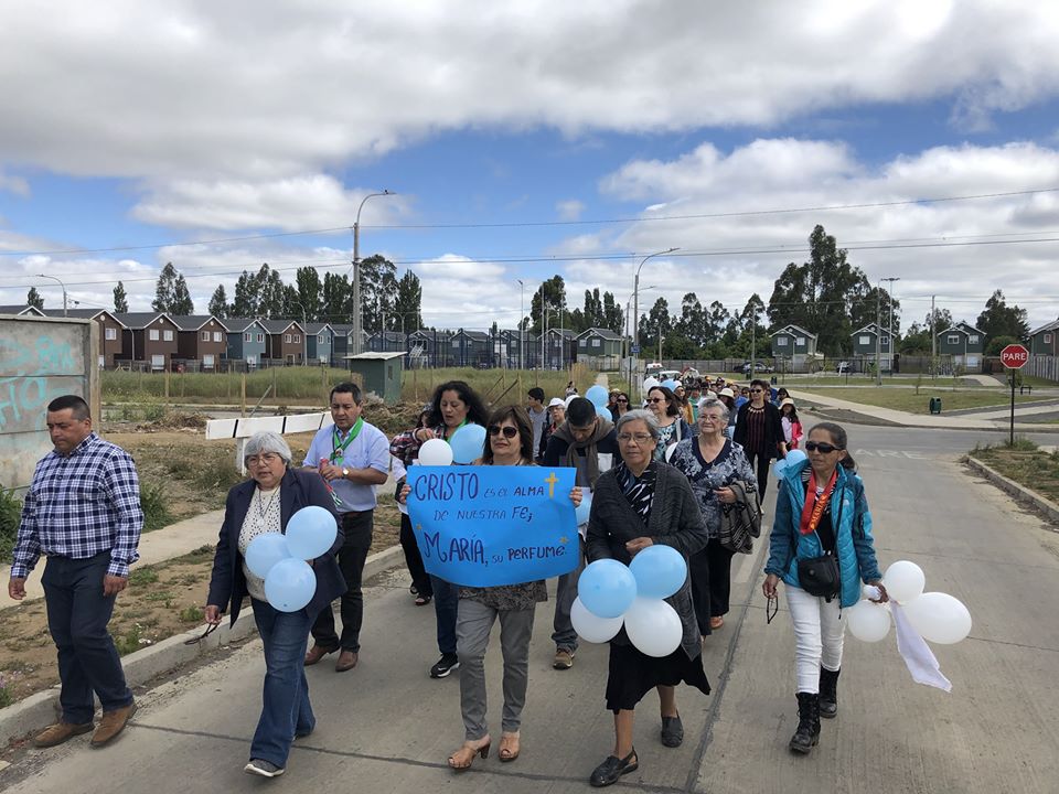 La comunidad parroquial de Jesús de la Misericordia de Labranza, marcó el cierre del Mes Mariano, con diversas actividades, las que destacan el Rosario humano que se llevó a cabo en la víspera de la festividad de la Inmaculada Concepción, una masiva procesión por las céntricas calles, portando globos, carteles y entonando canciones a nuestra madre, culminando con la Santa Eucaristía que presidió Fray Rodrigo Aguilar, quien agradeció a tantos fieles y los alentó a seguir dirigiendo su mirada a la Virgen María, para su intercesión al Padre, por la Paz y Justicia en nuestro país.