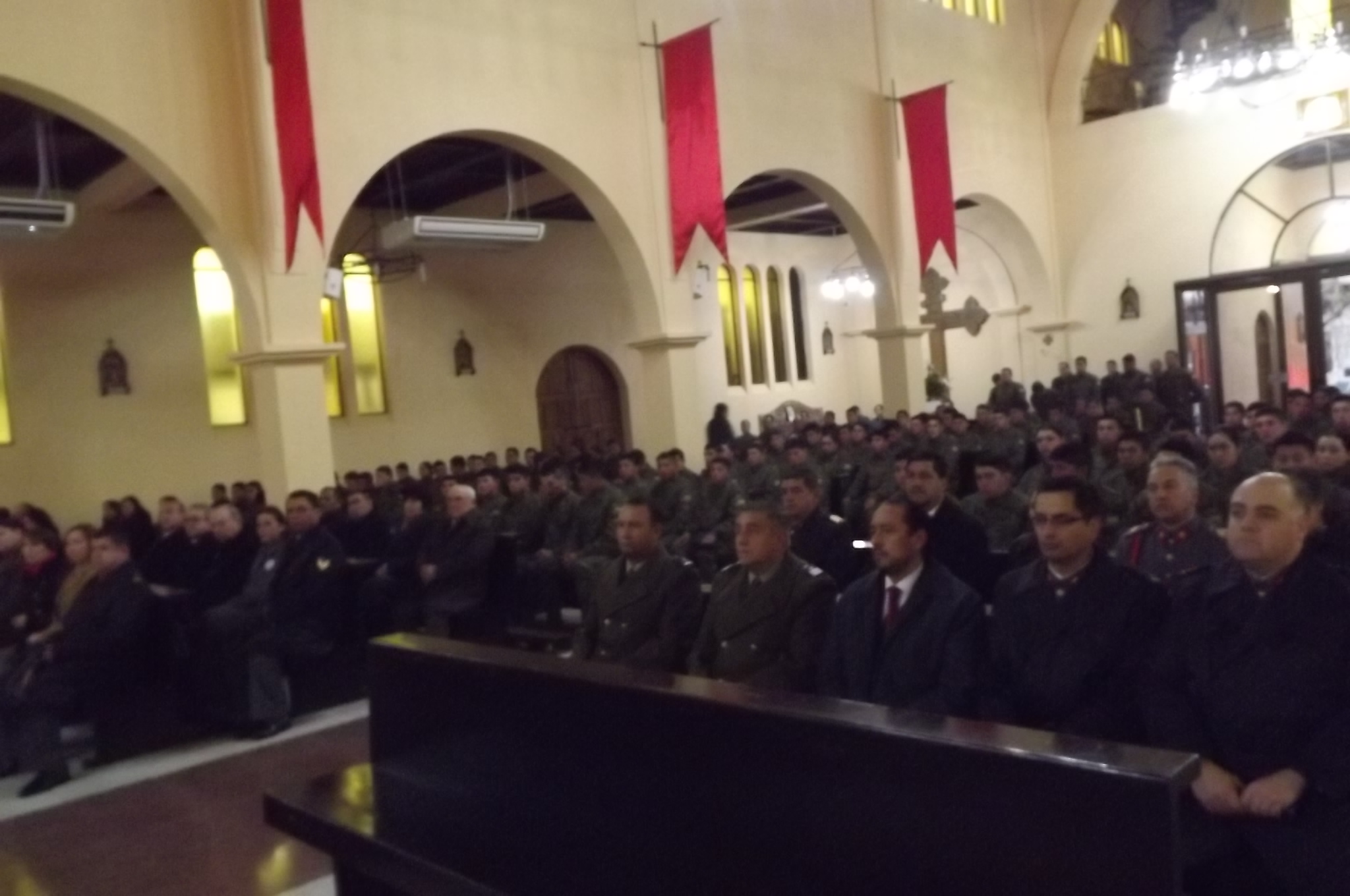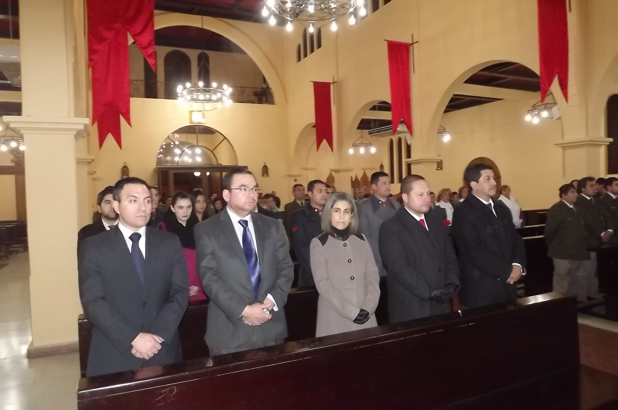 Autoridades municipales, delegaciones del Regimiento Logístico N° 3 Victoria, de Carabineros, Investigaciones, Gendarmería, Cuerpo de Bomberos, Damas de Rojo, dirigentes sociales y numeroso público, siguió la Santa Misa, acompañada musicalmente, por el Conjunto Folclórico Renacer.