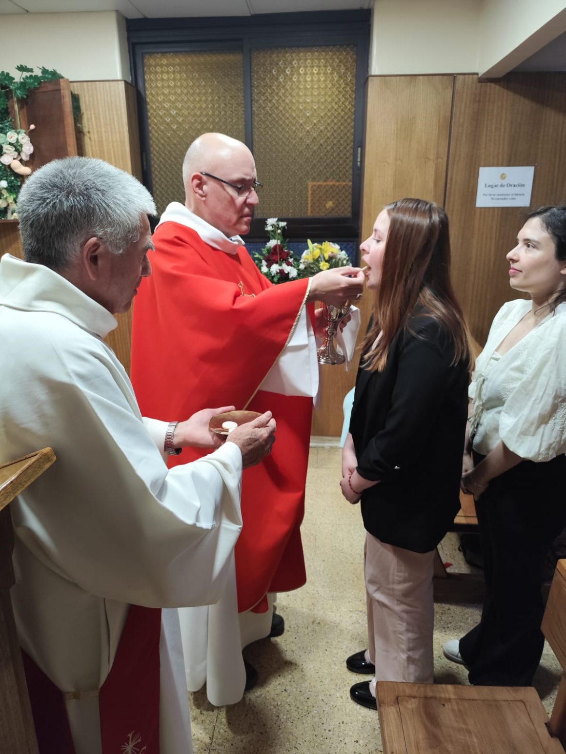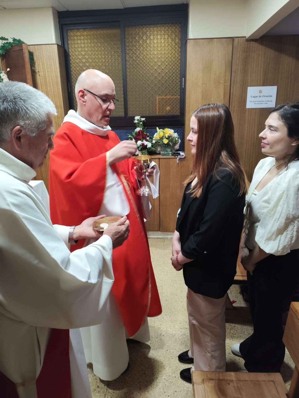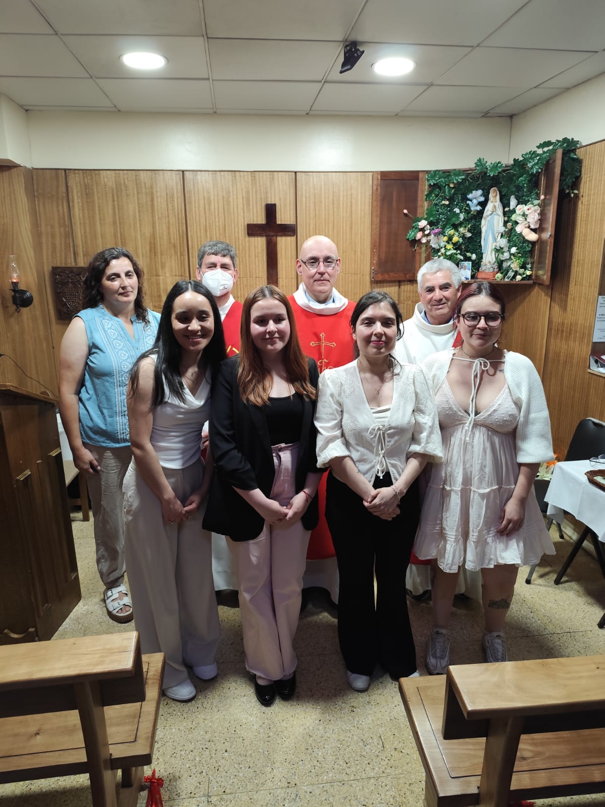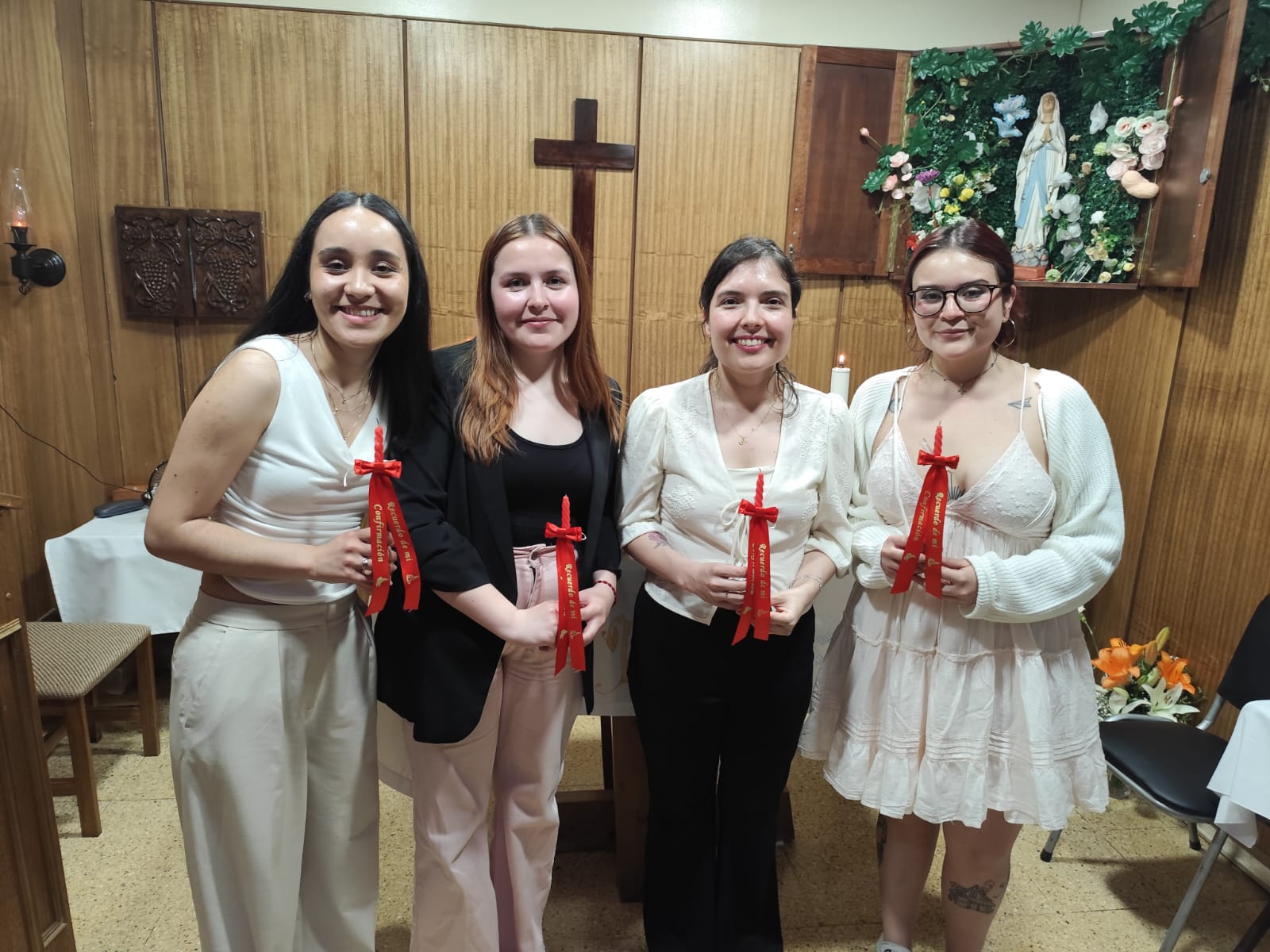 El viernes 19 se celebró una Santa Misa presidida por el Pbro. Leonardo Villagrán, donde cuatro hermanas recibieron el Sacramento de la Confirmación, todas ellas del área de la salud, una enfermera, una tecnóloga médica y dos estudiantes de Nutrición, quienes también forman parte de la Pastoral Hospitalaria.