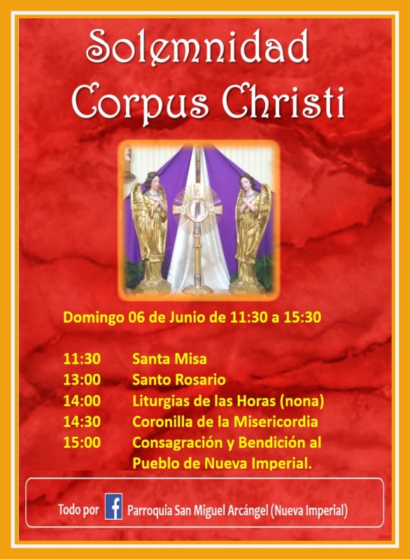 DiócesisNoticias CORPUS CHRISTI en P. San Miguel Arcángel de Nueva Imperial Diócesis de Temuco5 junio, 20211 min. Domingo 6 de Junio, vía Facebook Parroquia San Miguel Arcángel Nueva Imperial. Total 0 Shares Share 0 Tweet 0 Share 0 Share 0 Share 0 Pin it 0 Corpus Christi en Labranza Encuentro remoto con escuelas rurales y urbanas de Traiguén