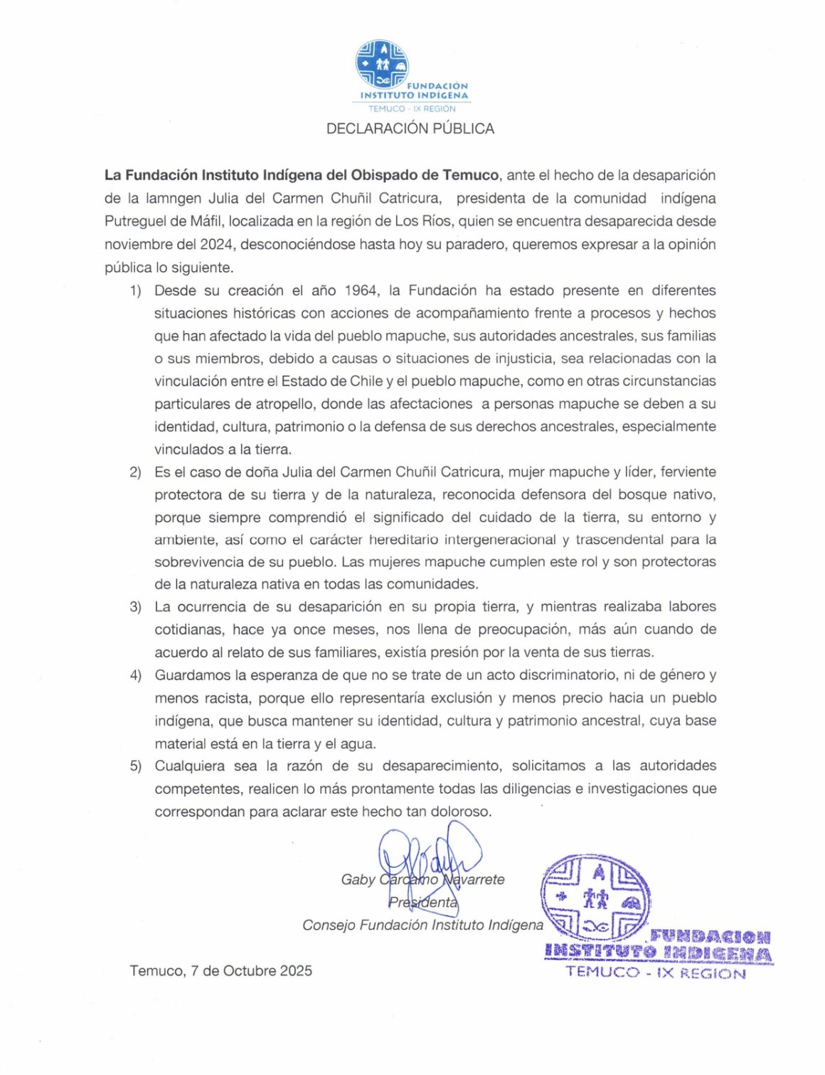 DiócesisNoticias Declaración Pública FII Diócesis de Temuco9 octubre, 20251 min. Damos a conocer a la comunidad la Declaración Pública de la Fundación Instituto Indígena de Temuco. Total 0 Shares Share 0 Tweet 0 Share 0 Share 0 Share 0 Pin it 0 Pastoral carcelaria de Temuco en Encuentro Nacional Nos preparamos para la Gran Fiesta del Centenario Diocesano