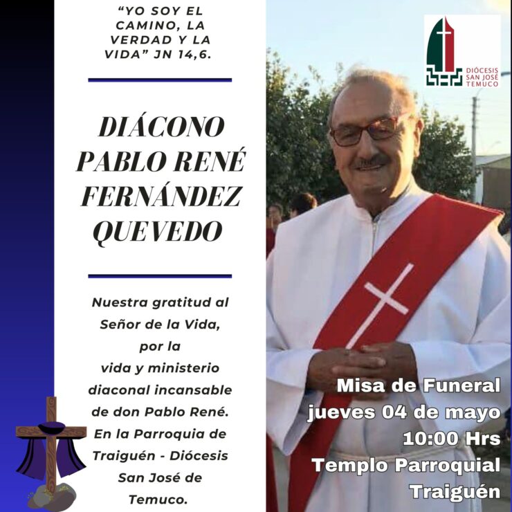 “A la edad de 84 años ha partido a la casa del Padre, nuestro diácono don Pablo René Fernández Quevedo.