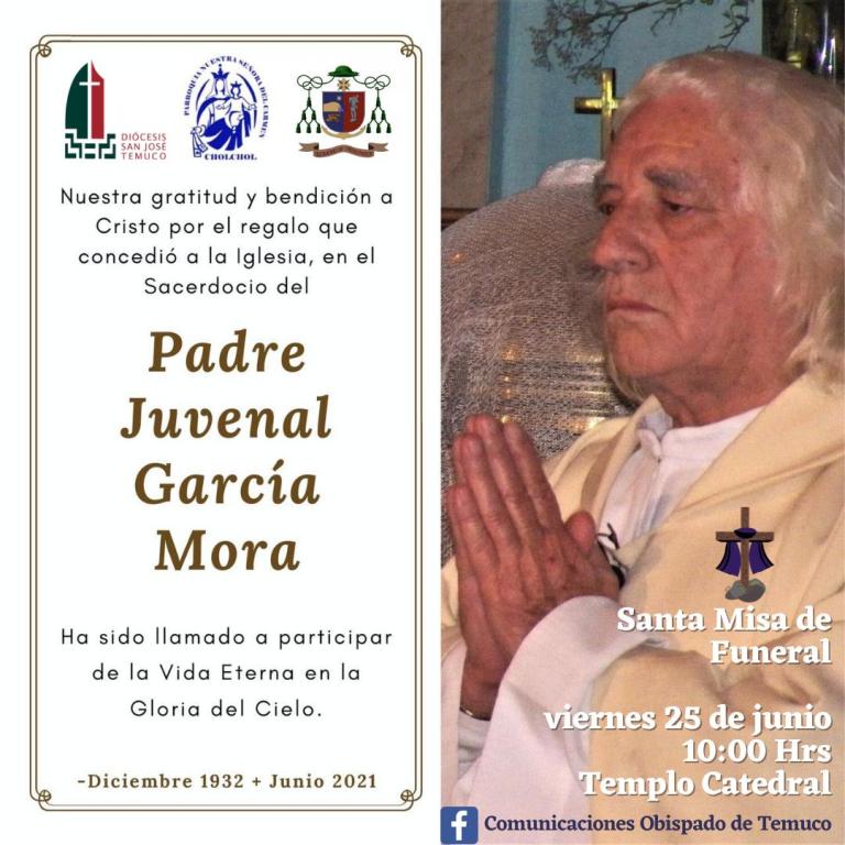 La Misa funeral será transmitida el viernes 25 de junio por el Facebook Comunicaciones Obispado de Temuco a partir de las 10 horas.