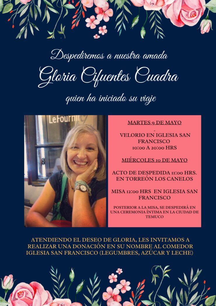 Hermana de la Sra. Isabel Cifuentes Cuadra, secretaria ejecutiva de la Vicaria para la Educación, del Obispado de Temuco.