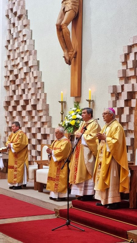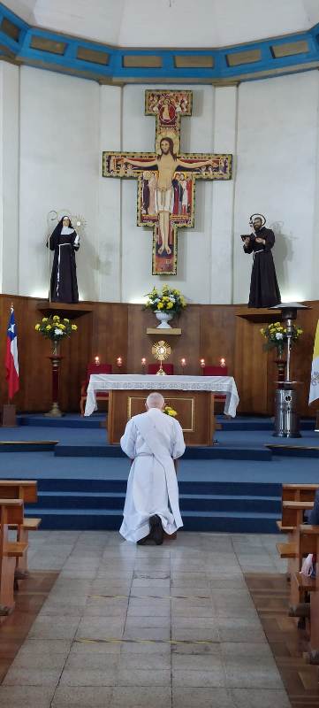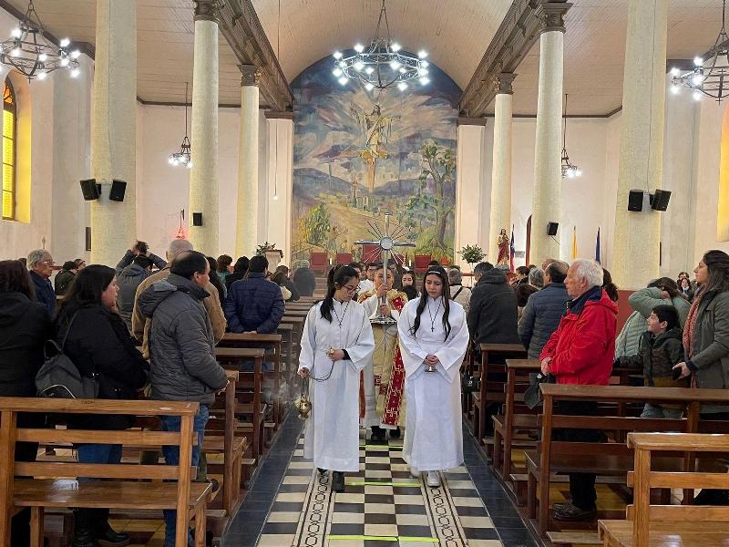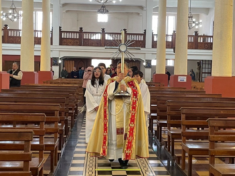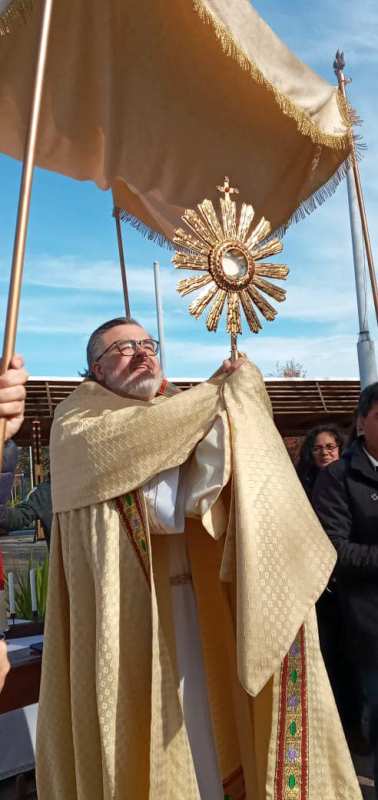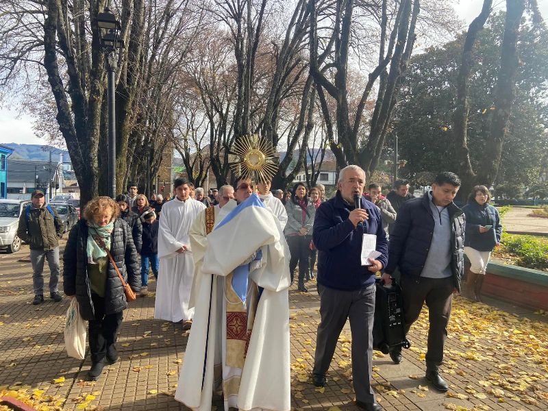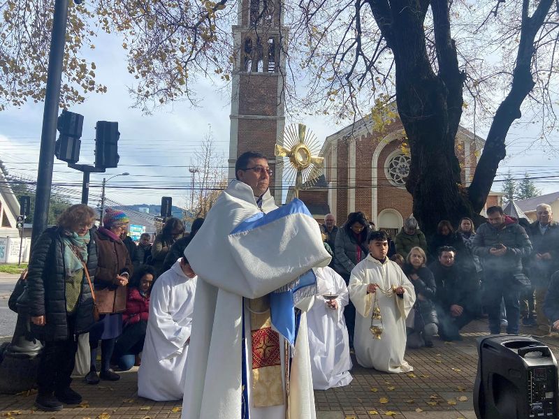 Nuestro obispo, monseñor Jorge Concha Cayuqueo, OFM, presidió la Eucaristía, junto al padre Juan Andrés Basly, vicario general, en el Templo Catedral de la ciudad de Temuco, expresando que: ” Esta fiesta del Corpus se vive de manera especial con la presencia real de Jesús en la Eucaristía. No se trata de un simple hacer memoria o recordar, sino de actualizar la vida y la muerte de Jesús para sumergirnos nosotros en ella. El amor de Dios, manifestado en Cristo Jesús, se vuelca hacia los pequeños, haciéndose pequeño y servidor de todos. Es la fuerza de este amor la que sostiene a los creyentes en el camino de la vida y nos compromete a vivir como Jesús, a dar nuestra vida a favor de los demás.
