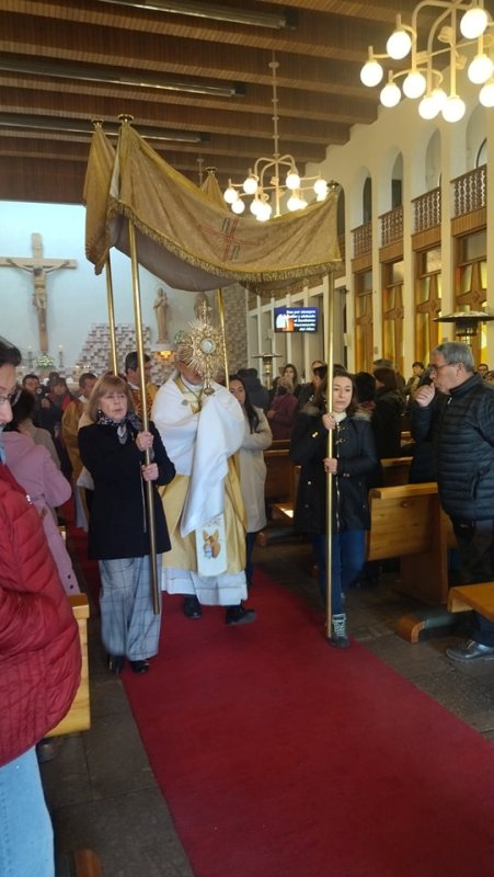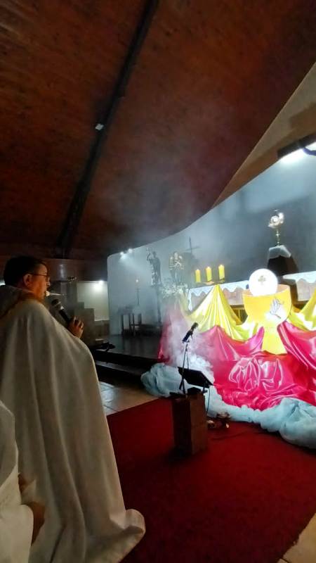 Posteriormente, se realizó la procesión del Santísimo Sacramento, recorrido por las principales calles de la capital regional, al igual que en las parroquias de los cinco decanatos, donde cuya manifestación es la presencia de Cristo en la Eucaristía.