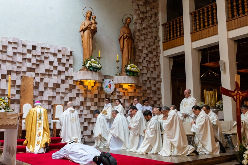 En compañía de los fieles mientras estaban arrodillados y Andrés recostado, se rezaron las letanías, momento en que se invoca la asistencia de Dios por medio de los Santos. Junto con esto, de los momentos más significativos, fue la Imposición de las Manos de parte del Obispo y todos los presbíteros en la cabeza de Andrés, quien se encontraba arrodillado.