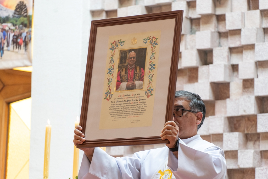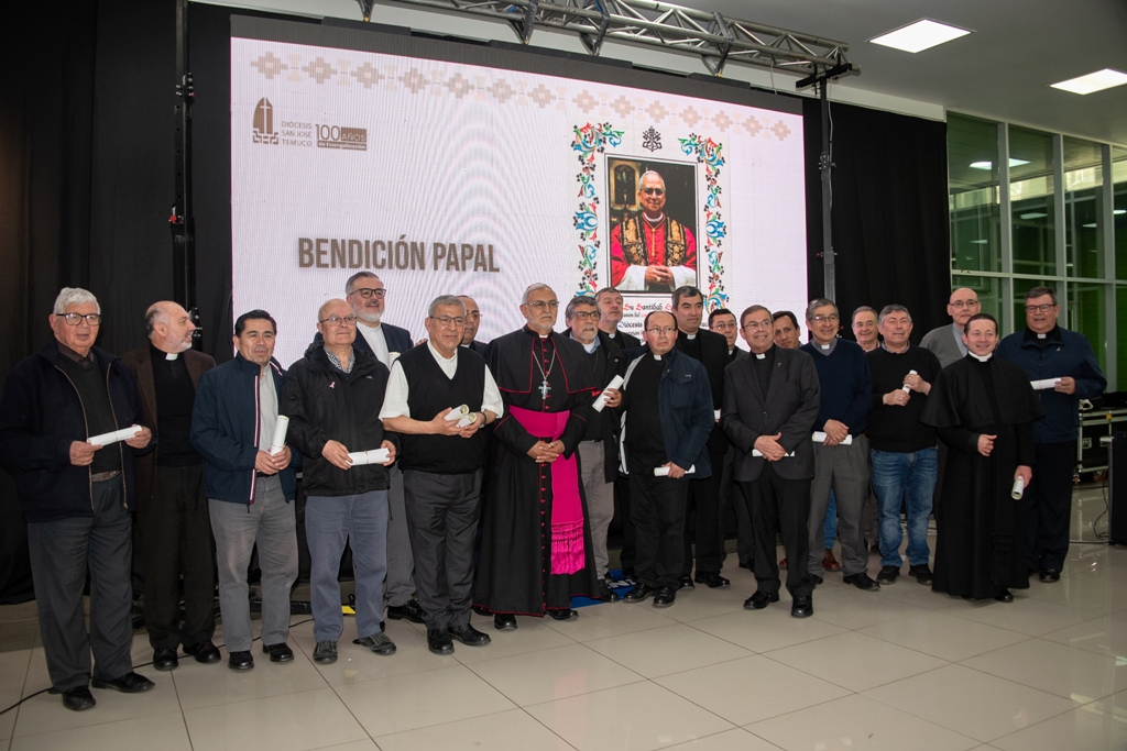 Uno de los momentos más emotivos fue la lectura de la Bendición del Papa León XIV, enviada desde la Santa Sede con motivo de los 100 años de nuestra Diócesis San José de Temuco, la cual fue entregada en forma de réplica a los decanos, para ser compartida en cada una de las parroquias de sus respectivos territorios. Esta bendición es signo de comunión con la Iglesia Universal y de la cercanía del Santo Padre con nuestro caminar diocesano.