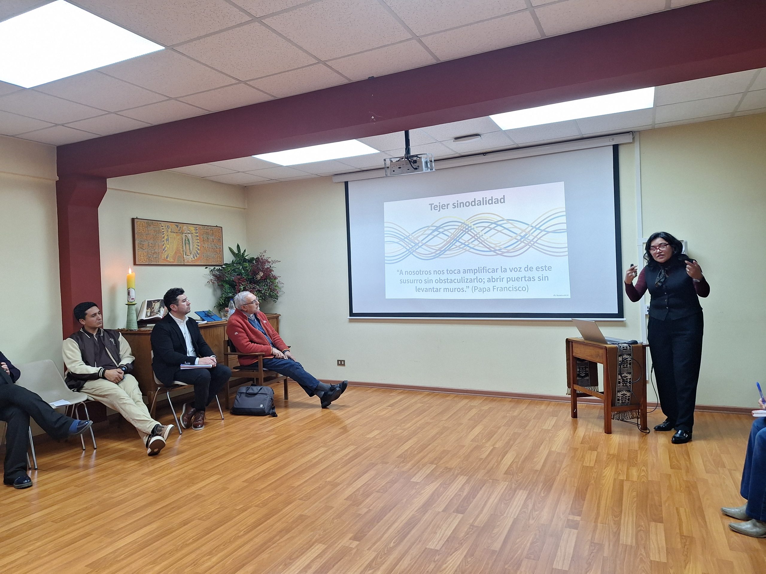 La Dra. Sandra Arenas Pérez, decana de la Facultad de Ciencias Religiosas y Filosofía de la Universidad Católica de Temuco, ofreció una exposición sobre la sinodalidad, abordándola como un camino eclesial que, impulsado con fuerza por el Papa Francisco, continúa proyectándose como un estilo de Iglesia basado en la escucha, el discernimiento y la corresponsabilidad.