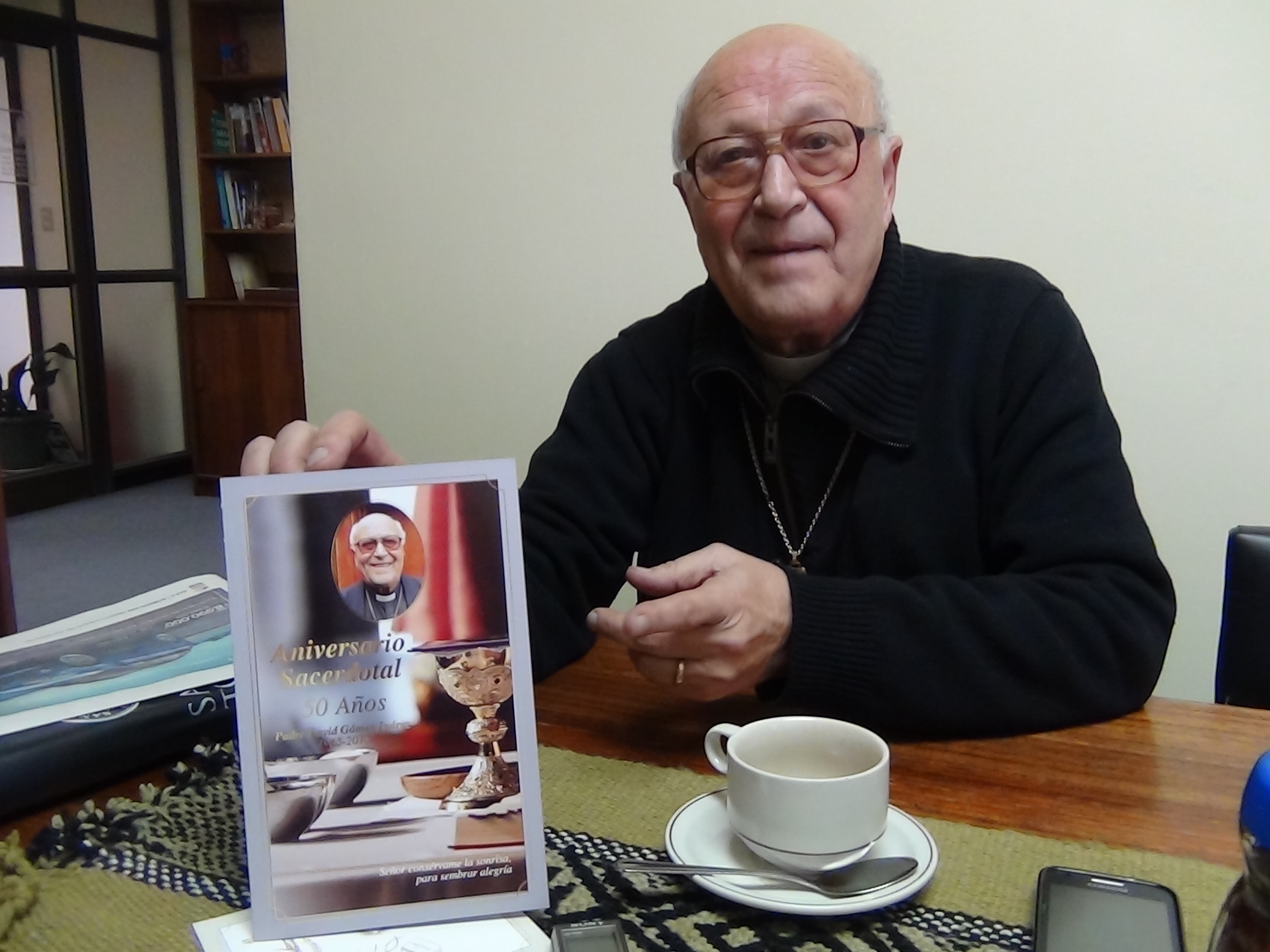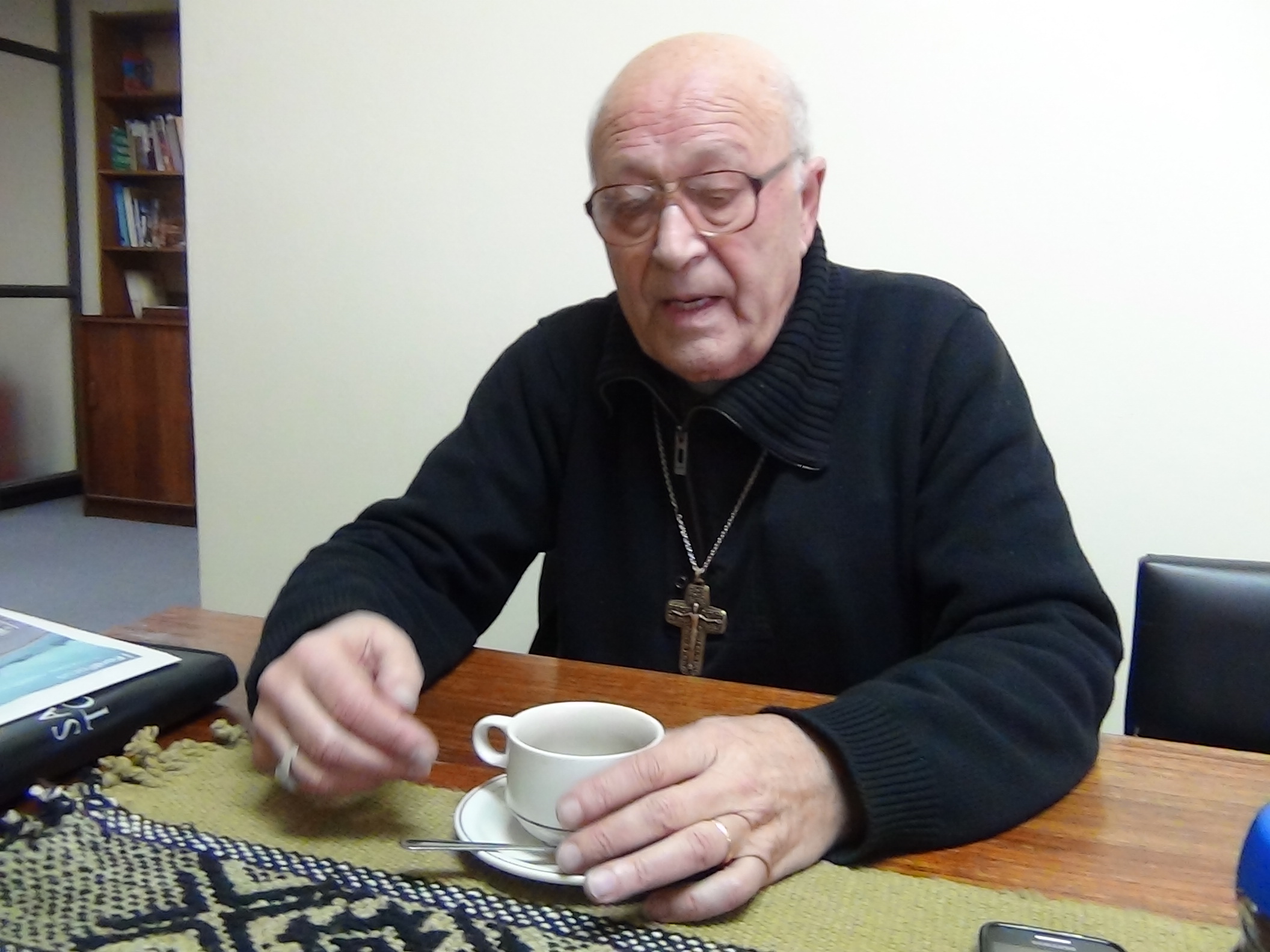 El Padre David Gómez (79), perteneciente de Villa Libre del Bierzo (león), España y también nacionalizado chileno, se reunió con la periodista del Obispado, Rocío D’Appollonio, quien realizó una entrevista en profundidad sobre su vocación como Hijo de Dios y además comentó a cerca de su desempeño espiritual en la región de la Araucanía en las dependencias de la Diócesis San José de Temuco.