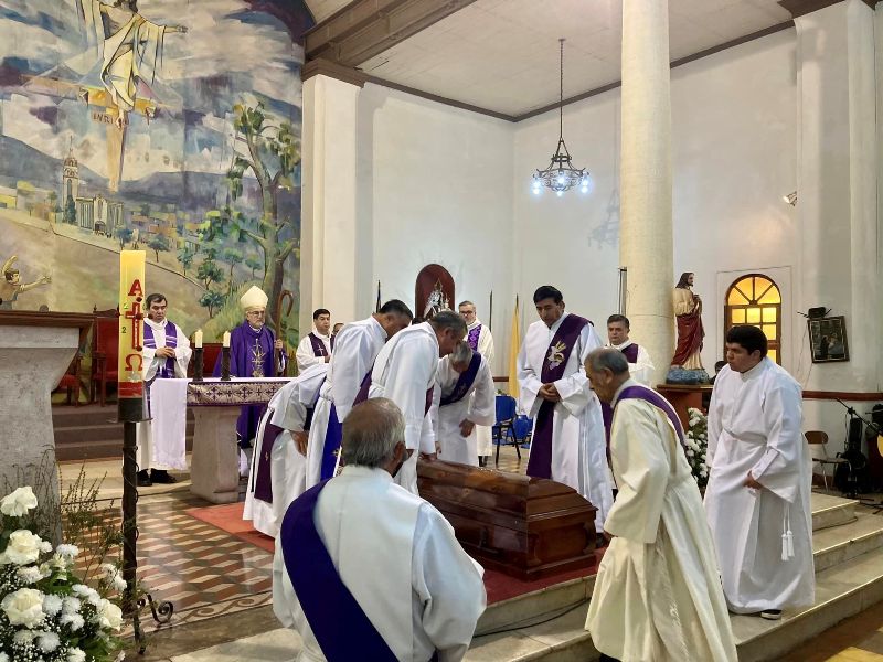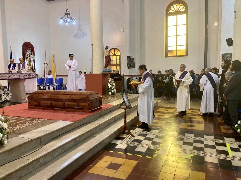 A continuación se dirigió a los presentes un representante del Consejo Parroquial, quien reiteró los agradecimientos por la vida de servicio y de trabajo pastoral del extinto consagrado. Finalmente se dirigieron a los presentes sus hijos, que en su nombre y el de su esposa Adelina Vallejos agradecieron la vida de su padre, sus ejemplos, enseñanzas y preocupaciones de padre y esposo durante su vida. “Nos enseñaste la fe y el amor por la Iglesia Católica, nos inculcaste la humildad, la generosidad, la preocupación por los demás, tal vez por ello la parroquia hoy está llena de personas que quisieron compartir tu pascua y venir a despedirte antes de partir a la Casa del Padre. Tenemos la convicción y la fe de que hoy estás en el cielo con tus seres queridos que partieron antes, te amamos viejito lindo”, emotivas palabras de sus hijos.