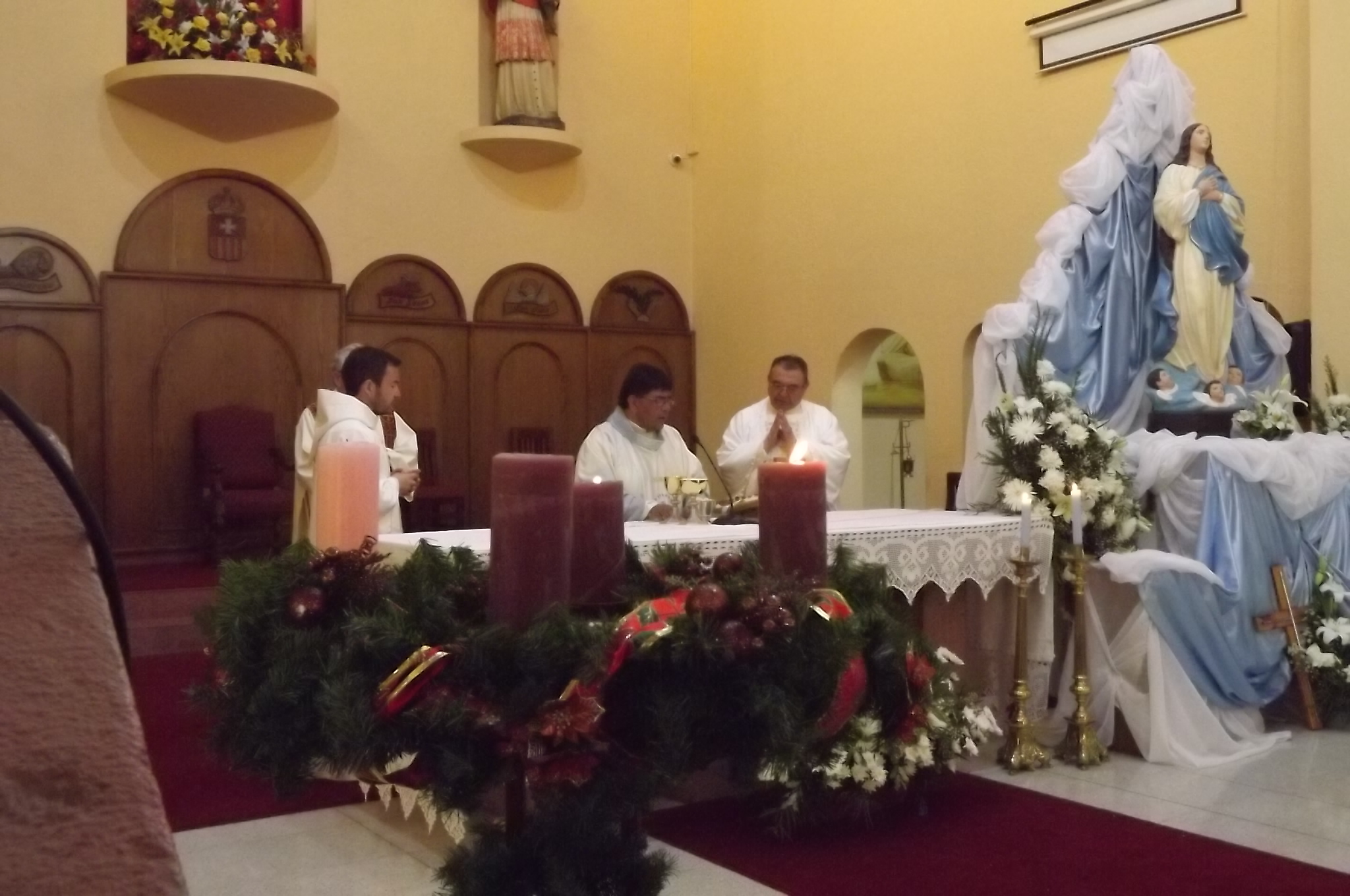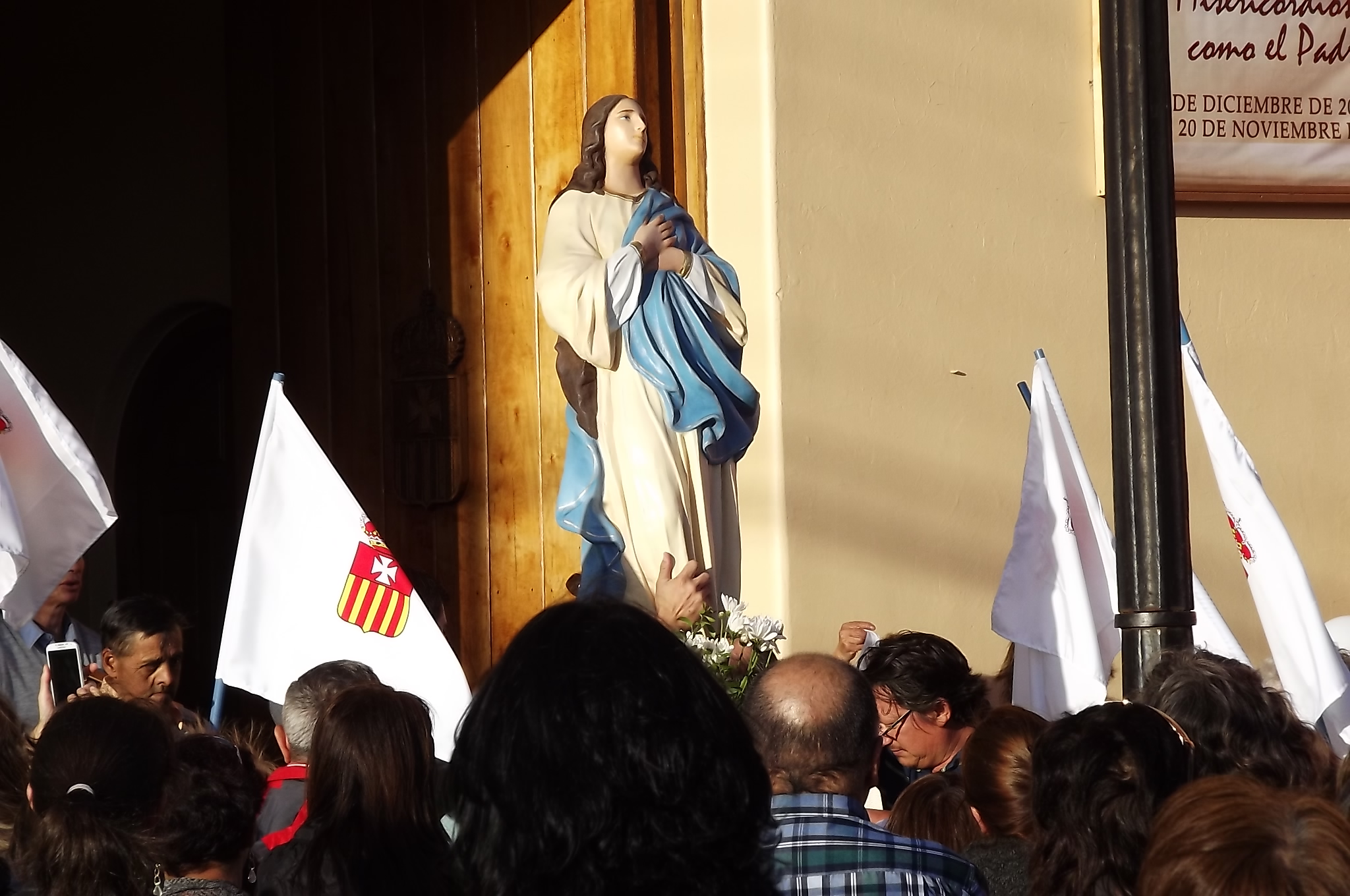 Previo al oficio religioso eucarístico, los fieles se congregaron, a las 18:30 horas, en la Capilla de San Ramón Nonato, en la Población Club Hípico. Desde allí, tras el envío y asperjar el cura párroco a los feligreses con agua bendita, la columna, portando la imagen de la Virgen María, peregrinó por diversas calles, donde las familias levantaron altares en el Día de la Purísima.