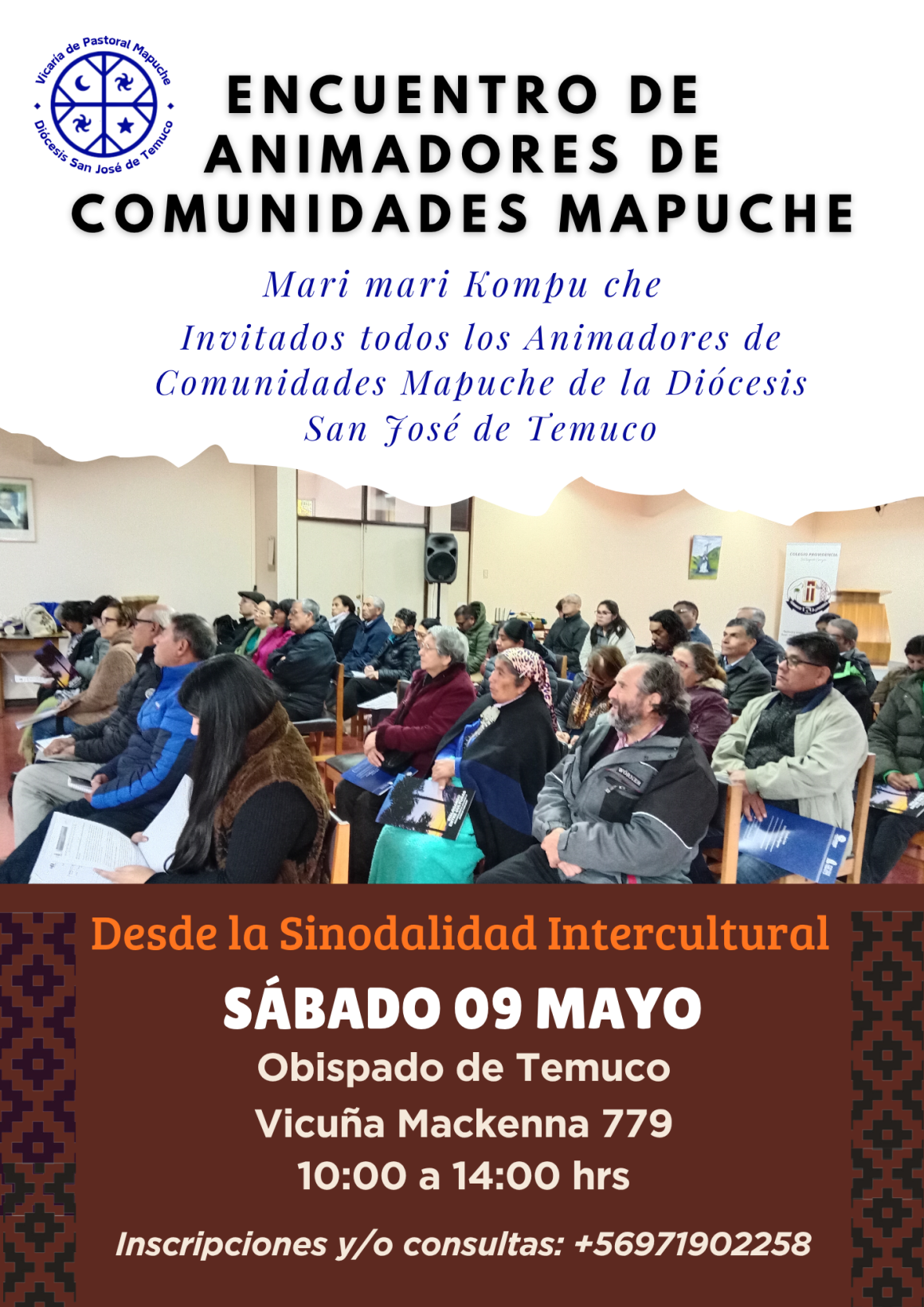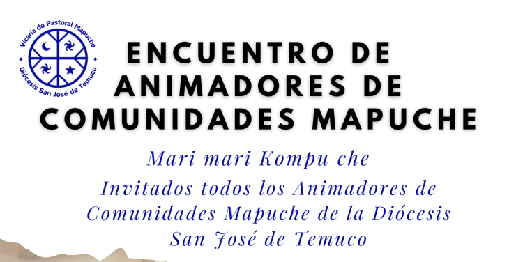 La Diócesis San José de Temuco invita a participar en el Encuentro de Animadores de Comunidades Mapuche, que se realizará el próximo 09 de mayo, desde las 10:00 hasta las 14:00 horas, en las dependencias del Obispado de Temuco.