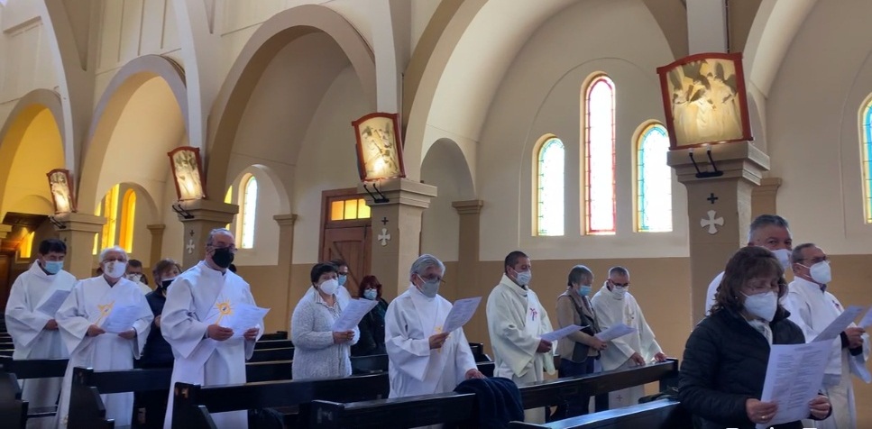 El domingo 26 de septiembre, se realizó el primer encuentro presencial del año de los diáconos permanentes de la Diócesis San José de Temuco, Santa Eucaristía celebrada en la Capilla del Colegio Santa Cruz de la comuna de Victoria y que, reunidos en comunidad diaconal, se oró por nuestra Patria, en el Día de Oración por Chile.