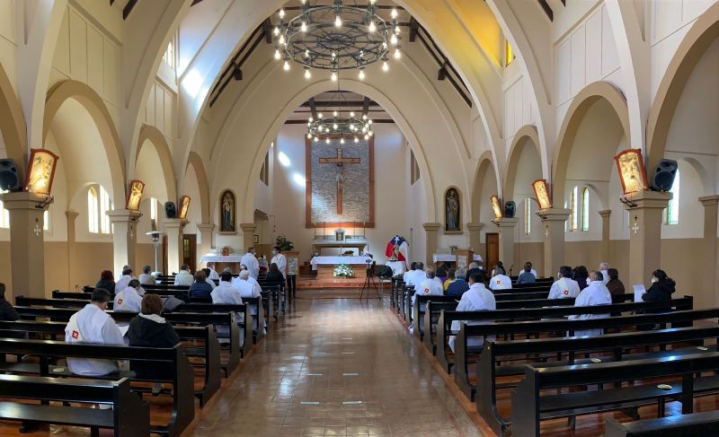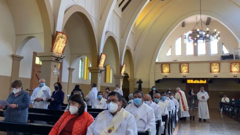 Agradecidos de este reencuentro, la celebración eucarística fue presidida por Fray Rodrigo Aguilar Gómez, asesor diocesano del Diaconado Permanente, quien expresó su sentir y gratitud, manifestando que: “Nos reunimos para dar gracias a Dios luego de tanto tiempo en que no hemos podido estar en forma presencial y queremos que en este día de oración por Chile, como diaconado permanente de la Diócesis San José de Temuco, dar gracias por reencontrarnos después de tanto tiempo y con la alegría de contar con nuevos diáconos permanentes para nuestra diócesis, con la alegría de contar con todos ustedes, con su salud (…) dar las gracias por que Él manifiesta su misericordia y amor por nosotros”.