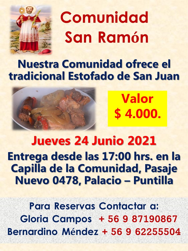 Disfrute de un rico estofado a beneficio de las obras sociales de la Ceb San Ramón de la Parroquia Perpetuo Socorro de la ciudad de Temuco.