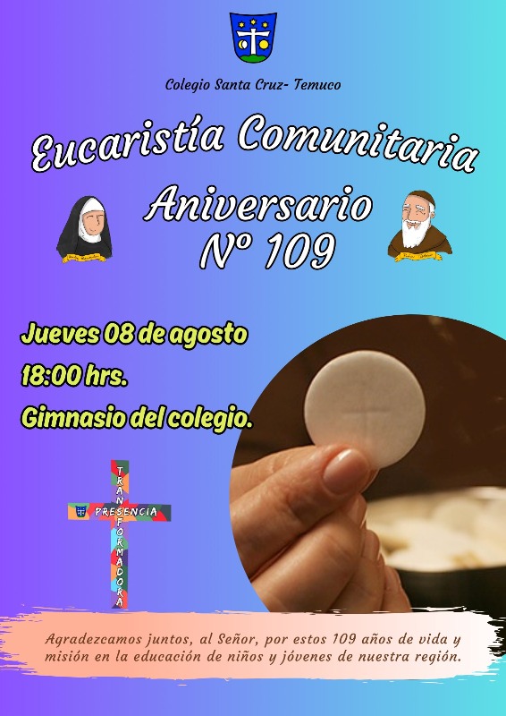 DiócesisNoticias EUCARISTIA Aniversario N° 109, colegio Santa Cruz de Temuco Diócesis de Temuco7 agosto, 20241 min. Jueves 08 de agosto, a las 18 horas, en el gimnasio del colegio. Total 0 Shares Share 0 Tweet 0 Share 0 Share 0 Share 0 Pin it 0 Eucaristía de Adoración en Parroquia JESÚS OBRERO en Temuco Curso de Formación en Parroquia SAN BUENAVENTURA EN ANGOL